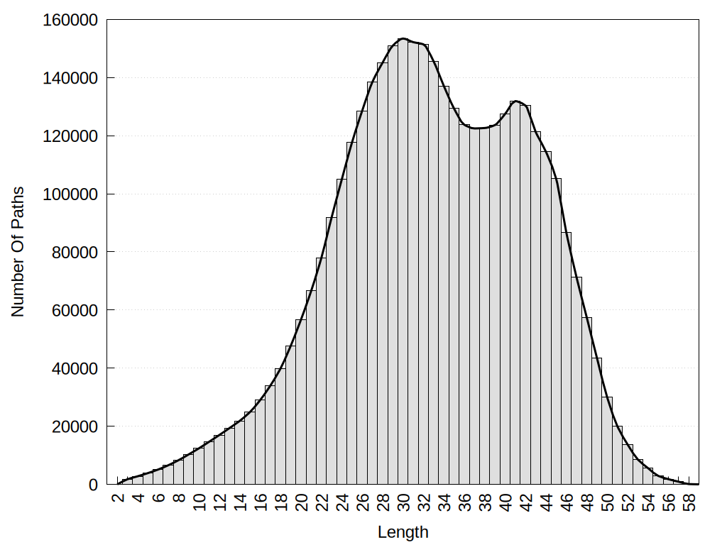 histograms of path distribution according to several parameters