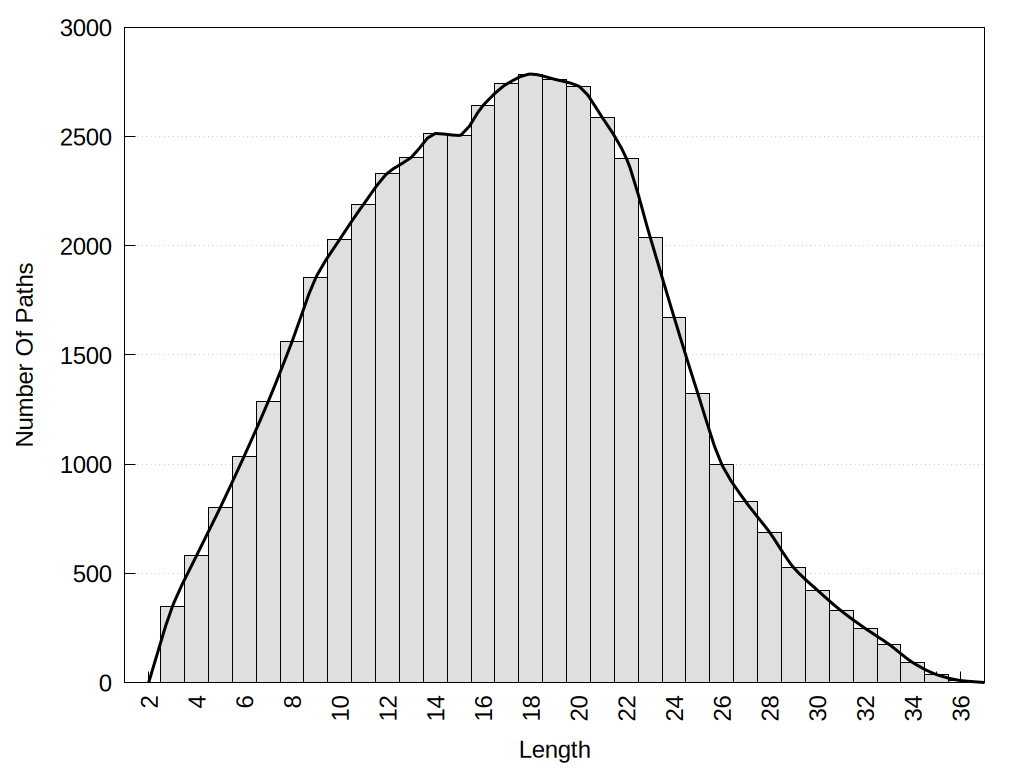 histograms of path distribution according to several parameters