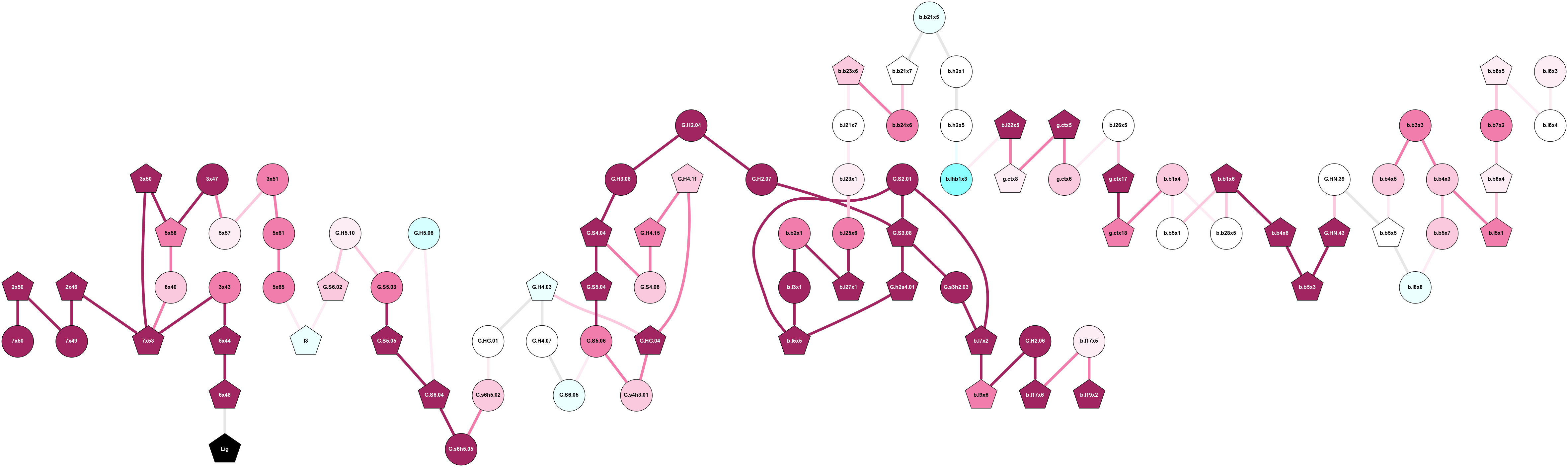 Show 100.00 Single 7VKT LTB4 7VKT-BLT1 -LTB4-Gi1/β1/γ2 Show 100.00 Consensus blt1_on Orthosteric Ligand 7VKT-BLT1 -LTB4-Gi1/β1/γ2 Show 100.00 Consensus blt1_on_gp Orthosteric Ligand 7VKT-BLT1 -LTB4-Gi1/β1/γ2 Show 100.00 Consensus blt_on Orthosteric Ligand blt1_on Show 100.00 Consensus blt_on_gp Orthosteric Ligand blt1_on_gp Show 100.00 Consensus gi_leukotriene Orthosteric Ligand 7VKT-BLT1 -LTB4-Gi1/β1/γ2 Show 100.00 Consensus leukotriene_on Orthosteric Ligand blt_on Show 58.82 Single 7SK9 CCX662 7SK9-ACKR3-CCX662 Show 47.37 Single 5UNF PubChem 15780052 5UNF-AT2 -PubChem 15780052 Show 47.06 Single 7JNI Olodanrigan 7JNI-AT2 -Olodanrigan Show 47.06 Consensus leukotriene_off Orthosteric Ligand blt_off cyslt_off Show 46.67 Single 7VIF S-FTY720-P 7VIF-S1P1 -S-FTY720-P-Gi1/β1/γ2 Show 44.44 Single 5UNG PubChem 15780052 5UNG-AT2 -PubChem 15780052 Show 44.44 Single 6BQH Ritanserin 6BQH-5-HT2C -Ritanserin Show 44.44 Single 7SK8 CCX662 7SK8-ACKR3-CXCL12-CCX662 Show 44.44 Single 7XK2 MK6892 7XK2-HCA2 -MK6892-Gi1/β1/γ2 Show 44.44 Consensus 5ht2c_off Orthosteric Ligand 6BQH-5-HT2C -Ritanserin Show 44.44 Consensus gi_s1p Orthosteric Ligand 7VIE-S1P1 -S1P-Gi1/β1/γ2 7EW3-S1P3 -S1P-Gi1/β1/γ2 7EVY-S1P1 -Siponimod-Gi1/β1/γ2 7EW1-S1P5 -Siponimod-Gi1/β1/γ2 7VIF-S1P1 -S-FTY720-P-Gi1/β1/γ2 7VIG-S1P1 -CBP-307-Gi1/β1/γ2 7EVZ-S1P1 -Cenerimod-Gi1/β1/γ2 7EW4-S1P3 -CYM5541-Gi1/β1/γ2 7EW2-S1P3 -Fingolimod-Gi1/β1/γ2 7EW0-S1P1 -Ozanimod-Gi1/β1/γ2 7EW7-S1P1 -SEW2871-Gi1/β1/γ2 Show 43.75 Single 8HNL PS372424 8HNL-CXCR3-PS372424-Gi1/β1/γ2 Show 43.75 Single 9MQK Isoquinuclidine 9MQK-κ-Isoquinuclidine Show 43.75 Consensus 5ht2_off Orthosteric Ligand 5ht2a_off 5ht2b_off 5ht2c_off Show 43.75 Consensus alpha_on_gp Orthosteric Ligand alpha1_on_gp alpha2_on_gp Show 43.75 Consensus lipid_on Orthosteric Ligand cannabinoid_on ffa_on lpl_on prostanoid_on leukotriene_on Show 43.75 Consensus lipid_on_gp Orthosteric Ligand cannabinoid_on_gp ffa_on_gp lpl_on_gp prostanoid_on_gp leukotriene_on_gp Show 42.86 Single 3V2W PubChem 51892645 3V2W-S1P1 -PubChem 51892645 Show 42.86 Single 6B73 MP1104 6B73-κ-MP1104 Show 42.86 Single 7VIH CBP-307 7VIH-S1P1 -CBP-307-Gi1/β1/γ2 Show 42.86 Single 8EFO PZM21 8EFO-μ-PZM21-Gi1/β1/γ2 Show 42.86 Single 8J6L Niacin 8J6L-HCA2 -Niacin-Gi1/β1/γ2 Show 42.86 Consensus s1p1_off Orthosteric Ligand 3V2W-S1P1 -PubChem 51892645 Show 42.11 Single 7XY6 BAY 60-6583 7XY6-A2B -BAY 60-6583-chim(NtGi1-Gs)/β1/γ2 Show 42.11 Single 8X5Y Astemizole 8X5Y-H1 -Astemizole Show 42.11 Consensus s1p_on Orthosteric Ligand s1p1_on s1p3_on s1p5_on Show 42.11 Consensus s1p_on_gp Orthosteric Ligand s1p1_on_gp s1p3_on_gp s1p5_on_gp Show 41.18 Single 4DJH JDTic 4DJH-κ-JDTic Show 41.18 Single 4U15 Tiotropium 4U15-M3 -Tiotropium Show 41.18 Single 6OL9 Tiotropium 6OL9-M5 -Tiotropium Show 41.18 Single 6TQ7 SB-334867 6TQ7-OX1 -SB-334867 Show 41.18 Single 7VIG CBP-307 7VIG-S1P1 -CBP-307-Gi1/β1/γ2 Show 41.18 Single 7W6P N-pyridin-4-ylisoquinolin-4-amine 7W6P-α2a -N-pyridin-4-ylisoquinolin-4-amine-Go/β1/γ2 Show 41.18 Single 7W7E PubChem 164946676 7W7E-α2a -PubChem 164946676-Go/β1/γ2 Show 41.18 Single 8EF5 Fentanyl 8EF5-μ-Fentanyl-Gi1/β1/γ2 Show 41.18 Single 8IRR Rotigotine 8IRR-D1 -Rotigotine-Gs/β1/γ2 Show 41.18 Single 8IYH MK6892 8IYH-HCA2 -MK6892-Go/β1/γ2 Show 41.18 Single 8JXX Clobenpropit 8JXX-H4 -Clobenpropit-Gi1/β1/γ2 Show 41.18 Single 8T1V PubChem 118310209 8T1V-GPR6-PubChem 118310209-Na Show 41.18 Consensus 5ht_off Orthosteric Ligand 5ht2_off 5ht1_off Show 41.18 Consensus amine_on_gp Orthosteric Ligand 5ht_on_gp adrenergic_on_gp dopamine_on_gp histamine_on_gp muscarinic_on_gp trace-amine_on_gp Show 41.18 Consensus h4_on_gp Orthosteric Ligand 8HN8-H4 -Histamine-Gi1/β1/γ2 8HOC-H4 -Imetit-Gi1/β1/γ2 8JXV-H4 -Clozapine-Gi1/β1/γ2 8JXW-H4 -VUF6884-Gi1/β1/γ2 8JXX-H4 -Clobenpropit-Gi1/β1/γ2 Show 41.18 Consensus kop_off Orthosteric Ligand 4DJH-κ-JDTic Show 41.18 Consensus m5_off Orthosteric Ligand 6OL9-M5 -Tiotropium Show 41.18 Consensus ta1_on_gp Orthosteric Ligand 8W87-TA1-METH-chim(NtGi1L-Gs)/β1/γ2 8W89-TA1-PEA-chim(NtGi1L-Gs)/β1/γ2 8JLP-TA1-Ralmitaront-Gs/β1/γ2 8W8A-TA1-RO5256390-chim(NtGi1L-Gs)/β1/γ2 8W88-TA1-SEP-363856-Gs/β1/γ2 8JLO-TA1-Ulotaront-Gs/β1/γ2 8JLR-TA1-A77636-chim(NtGi1-Gs)/β1/γ2 8JSO-TA1-AMPH-chim(NtGi1-Gs)/β1/γ2 8ZSP-TA1-LSD-chim(NtGi1L-Gs-CtGq)/β1/γ2 Show 41.18 Consensus trace-amine_on_gp Orthosteric Ligand ta1_on_gp Show 40.91 Single 8J6I MK6892 8J6I-HCA2 -MK6892-Gi1/β1/γ2 Show 40.00 Single 3V2Y PubChem 51892645 3V2Y-S1P1 -PubChem 51892645 Show 40.00 Single 4ZJC SB-674042 4ZJC-OX1 -SB-674042 Show 40.00 Single 6ME3 2-Phenylmelatonin 6ME3-MT1 -2-Phenylmelatonin Show 40.00 Single 6PS8 2-Phenylmelatonin 6PS8-MT1 -2-Phenylmelatonin Show 40.00 Single 7EJA Dexmedetomidine 7EJA-α2a -Dexmedetomidine-Go/β1/γ2 Show 40.00 Single 7TD4 Siponimod 7TD4-S1P1 -Siponimod-Gi1/β1/γ2 Show 40.00 Single 7UM7 Methylergometrine 7UM7-5-HT5A -Methylergometrine-chim(NtGi1-Go)/β1/γ2 Show 40.00 Single 8DCR Dobutamine 8DCR-β1 -Dobutamine-Gs/β1/γ2 Show 40.00 Single 8FYL Vilazodone 8FYL-5-HT1A -Vilazodone-Gi1/β1/γ1 Show 40.00 Single 8GUQ Olorinab 8GUQ-CB2 -Olorinab-Gi1/β1/γ2 Show 40.00 Single 8HNM VUF11222 8HNM-CXCR3-VUF11222-Gi1/β1/γ2 Show 40.00 Single 8K5C Acipimox 8K5C-HCA2 -Acipimox Show 40.00 Single 8PM2 DMCH 8PM2-TA7-DMCH-Gs/β1/γ2 Show 40.00 Single 8THK A61603 8THK-Alpha1A-A61603-chim(NtGi2L-Gs-CtGq)/β1/γ2 Show 40.00 Single 8THL Epinephrine 8THL-Alpha1A-Epinephrine-chim(NtGi2L-Gs-CtGq)/β1/γ2 Show 40.00 Single 8WC8 ZH8651 8WC8-TA1-ZH8651-chim(NtGi1-Gs)/β1/γ2 Show 40.00 Single 8YN3 Histamine 8YN3-H2 -Histamine-Gs/β1/γ2 Show 40.00 Single 9CBL Epinephrine 9CBL-α2a -Epinephrine-Gi1/β1/γ2 Show 40.00 Single 9MQI Isoquinuclidine 9MQI-μ-Isoquinuclidine Show 40.00 Consensus alpha1_on Orthosteric Ligand alpha1a_on Show 40.00 Consensus alpha1_on_gp Orthosteric Ligand alpha1a_on_gp Show 40.00 Consensus alpha1a_on Orthosteric Ligand 7EJ0-α2a -L-Nor