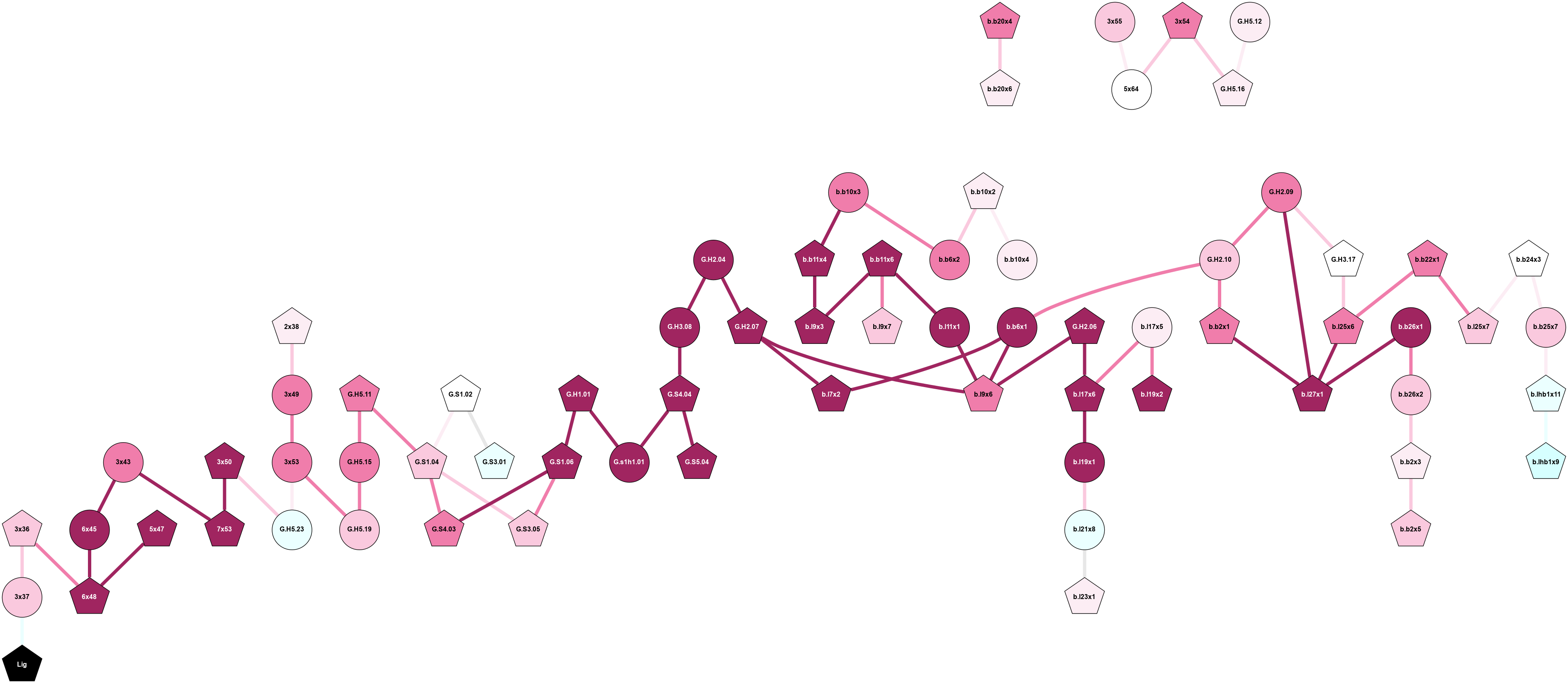 Show 100.00 Single 7XXI 2MeSADP 7XXI-P2Y12 -2MeSADP-Gi2/β1/γ2 Show 100.00 Consensus gi_p2y Orthosteric Ligand 7XXI-P2Y12 -2MeSADP-Gi2/β1/γ2 Show 92.86 Consensus p2y12_on Orthosteric Ligand 7XXI-P2Y12 -2MeSADP-Gi2/β1/γ2 Show 75.00 Single 4PXZ 2MeSADP 4PXZ-P2Y12 -2MeSADP Show 75.00 Single 4PY0 2MeSATP 4PY0-P2Y12 -2MeSATP Show 63.16 Single 9J0I UDP-Glucuronic acid 9J0I-P2Y14 -UDP-Glucuronic acid-Gi1/β1/γ2 Show 55.00 Consensus gi_nucleotide Orthosteric Ligand gi_adenosine gi_p2y Show 52.94 Single 4NTJ AZD1283 4NTJ-P2Y12 -AZD1283 Show 52.38 Single 9J0F NADH 9J0F-P2Y14 -NADH-Gi1/β1/γ2 Show 47.83 Consensus p2y_on_gp Orthosteric Ligand p2y1_on_gp p2y10_on_gp p2y12_on_gp Show 42.11 Single 8XBI S3E-LysoPS 8XBI-GPR34-S3E-LysoPS Show 40.91 Single 8XBH S3E-LysoPS 8XBH-GPR34-S3E-LysoPS-Gi1/β1/γ2 Show 40.91 Consensus p2y_on Orthosteric Ligand p2y1_on p2y10_on p2y12_on Show 38.10 Consensus nucleotide_on_gp Orthosteric Ligand adenosine_on_gp p2y_on_gp Show 36.84 Consensus nucleotide_on Orthosteric Ligand adenosine_on p2y_on Show 36.36 Single 8SAI 1-Oleoyl-2-Hydroxy-Sn-Glycero-3-Phospho-L-Serine 8SAI-GPR34-1-Oleoyl-2-Hydroxy-Sn-Glycero-3-Phospho-L-Serine-Gi1/β1/γ2 Show 36.36 Single 9NS9 TUG-1375 9NS9-FFA2-TUG-1375-Compound 187-Gi1/β1/γ2 Show 36.36 Single 9V2N Macimorelin 9V2N-Ghrelin-Macimorelin-chim(NtGi1-Gs-CtGq)/β1/γ2 Show 35.29 Single 8J20 Valeric acid 8J20-FFA3-Valeric acid-AR420626-Gi1/β1/γ2 Show 35.00 Single 6RZ5 Zafirlukast 6RZ5-CysLT1 -Zafirlukast-Na Show 35.00 Single 7XAV Lanreotide 7XAV-SST2-Lanreotide-Gi1/β1/γ2 Show 35.00 Single 8JGF BAM8-22 8JGF-MRGPRX1-BAM8-22-chim(NtGi1-Gs-CtGq)/β1/γ2 Show 35.00 Single 8JSR Anamorelin 8JSR-Ghrelin-Anamorelin-chim(NtGi1-Gs-CtGq)/β1/γ2 Show 35.00 Consensus cyslt1_off Orthosteric Ligand 6RZ5-CysLT1 -Zafirlukast-Na 6RZ4-CysLT1 -Pranlukast-Na Show 35.00 Consensus ffa2_on Orthosteric Ligand 8J22-FFA2-TUG-1375-Gi1/β1/γ2 Show 35.00 Consensus ffa_on Orthosteric Ligand ffa2_on ffa3_on Show 35.00 Consensus ffa_on_gp Orthosteric Ligand ffa2_on_gp ffa3_on_gp Show 35.00 Consensus gi_ffa Orthosteric Ligand 8J21-FFA3-Butyric acid-Gi1/β1/γ2 8J22-FFA2-TUG-1375-Gi1/β1/γ2 Show 34.78 Single 8IZB Lysophosphatidylserine 8IZB-GPR174-Lysophosphatidylserine-Gs/β1/γ2 Show 33.33 Single 8K4N VF0 8K4N-GPR34-VF0-Gi1/β1/γ2 Show 33.33 Single 8KH5 Lysophosphatidylserine 8KH5-GPR174-Lysophosphatidylserine-Gs/β1/γ2 Show 33.33 Single 8WRB Lysophosphatidylserine 8WRB-GPR34-Lysophosphatidylserine-Gi1/β1/γ2 Show 33.33 Single 8XQF Apelin-13 8XQF-Apelin-Apelin-13-Gi1/β1/γ2 Show 33.33 Single 8XYD Platelet Activating Factor 8XYD-PAF-Platelet Activating Factor-Gi1/β1/γ2 Show 33.33 Single 9IXX LTD4 9IXX-CysLT2 -LTD4-chim(NtGi1-Gs-CtGq)/β1/γ2 Show 33.33 Consensus ffa2_on_gp Orthosteric Ligand 8J22-FFA2-TUG-1375-Gi1/β1/γ2 Show 31.82 Single 7WVV fMLFII 7WVV-FPR2-ALX-fMLFII-Gi2/β1/γ2 Show 31.82 Single 8XBE S3E-LysoPS 8XBE-GPR34-S3E-LysoPS-Gi1/β1/γ1 Show 31.82 Single 8ZPL HF51116 8ZPL-CXCR4-HF51116 Show 31.58 Single 7NA8 PubChem 178024 7NA8-Ghrelin-PubChem 178024-Gi1/β1/γ2 Show 31.58 Single 7PP1 Selatogrel 7PP1-P2Y12 -Selatogrel Show 31.58 Single 8XBG S3E-LysoPS 8XBG-GPR34-S3E-LysoPS Show 31.25 Single 8J21 Butyric acid 8J21-FFA3-Butyric acid-Gi1/β1/γ2 Show 31.25 Consensus ffa3_on Orthosteric Ligand 8J21-FFA3-Butyric acid-Gi1/β1/γ2 Show 31.25 Consensus ffa3_on_gp Orthosteric Ligand 8J21-FFA3-Butyric acid-Gi1/β1/γ2 Show 30.43 Single 6RZ6 ONO-2570366 6RZ6-CysLT2 -ONO-2570366 Show 30.43 Single 8H4I Doconexent 8H4I-FFA4-Doconexent-chim(NtGi1-Gs)/β1/γ2 Show 30.43 Single 8J22 TUG-1375 8J22-FFA2-TUG-1375-Gi1/β1/γ2 Show 30.43 Single 9CM7 TUG-1375 9CM7-FFA2-TUG-1375-AZ-1729-Gi1/β1/γ2 Show 30.43 Single 9ITB LPA 9ITB-LPA6 -LPA-chim(NtGi1-Gs-CtGq)/β1/γ2 Show 30.43 Consensus dop_on Orthosteric Ligand 8F7S-δ-Deltorphin-Gi1/β1/γ2 Show 30.00 Single 4PHU Fasiglifam 4PHU-FFA1-Fasiglifam Show 30.00 Single 7EUO fMLF 7EUO-FPR1-ALX-fMLF-Gi1/β1/γ2 Show 30.00 Single 7VFX fMLF 7VFX-FPR1-ALX-fMLF-Gi1/β1/γ2 Show 30.00 Single 7VV4 Cortistatin-14 7VV4-MRGPRX2-Cortistatin-14 Show 30.00 Single 7Y26 Octreotide 7Y26-SST2-Octreotide-chim(NtGi2L-Gs-CtGq)/β1/γ2 Show 30.00 Single 8EJC TAK-875 8EJC-FFA1-TAK-875-chim(NtGi1L-Gs-CtGq)/β1/γ2 Show 30.00 Single 8ID4 Linoleic acid 8ID4-FFA4-Linoleic acid-Gi1/β1/γ2 Show 30.00 Single 8IZ4 Lysophosphatidylserine 8IZ4-GPR34-Lysophosphatidylserine-Gi1/β1/γ2 Show 30.00 Single 8QOT Nanobody-E 8QOT-μ-Nanobody-E Show 30.00 Consensus a3_on_gp Orthosteric Ligand a3a_on_gp Show 30.00 Consensus a3a_on Orthosteric Ligand 8X17-A3A -Namodenoson-Gi1/β1/γ2 8X16-A3A -Piclidenoson-Gi1/β1/γ2 Show 30.00 Consensus a3a_on_gp Orthosteric Ligand 8X17-A3A -Namodenoson-Gi1/β1/γ2 8X16-A3A -Piclidenoson-Gi1/β1/γ2 Show 30.00 Consensus cyslt_off Orthosteric Ligand cyslt2_off cyslt1_off Show 30.00 Consensus fpr1-alx_on Orthosteric Ligand 7VFX-FPR1-ALX-fMLF-Gi1/β1/γ2 Show 30.00 Consensus fpr1-alx_on_gp Orthosteric Ligand 7VFX-FPR1-ALX-fMLF-Gi1/β1/γ2 Show 29.63 Single 7F9Y Ghrelin-28 7F9Y-Ghrelin-Ghrelin-28-chim(NtGi1-Gs-CtGq)/β1/γ2 Show 29.63 Single 8XVI Endothelin-1 8XVI-ETA -Endothelin-1-chim(Gs-CtGq)/β1/γ2 Show 29.17 Single 6RZ8 ONO-2080365 6RZ8-CysLT2 -ONO-2080365 Show 29.17 Single 7NA7 Ghrelin-27 7NA7-Ghrelin-Ghrelin-27-Gi1/β1/γ2 Show 29.17 Single 7T6U CGEN-855A 7T6U-FPR2-ALX-CGEN-855A-Gi1/β1/γ2 Show 29.17 Single 7WKD TRH 7WKD-TRH-TRH-chim(NtGi1-Gs-CtGq)/β1/γ2 Show 29.17 Single 8DWG Proenkephalin-A 8DWG-MRGPRX1-Proenkephalin-A-ML382-chim(NtGi2L-Gs-CtGq)/β1/γ2 Show 29.17 Single 8WKY PG-934 8WKY-MC4 -PG-934 Show 28.57 Single 5TZR MK8666 5TZR-FFA1-MK8666 Show 28.57 Single 6DDE Damgo 6DDE-μ-Damgo-Gi1/β1/γ2 Show 28.57 Single 7S8M Cortistatin-14 7S8M-MRGPRX2-Cortistatin-14-Gi1/β1/γ2 Show 28.57 Single 8ID6 Oleic acid 8ID6-FFA4-Oleic acid-Gi1/β1/γ2 Show 28.57 Single 8X16 Piclidenoson 8X16-A3A -Piclidenoson-Gi1/β1/γ2 Show 28.57 Single 9ITE LPA 9ITE-LPA6 -LPA-chim(NtGi2-G13)/β1/γ2 Show 28.57 Single 9UY3 Anamorelin 9UY3-Ghre