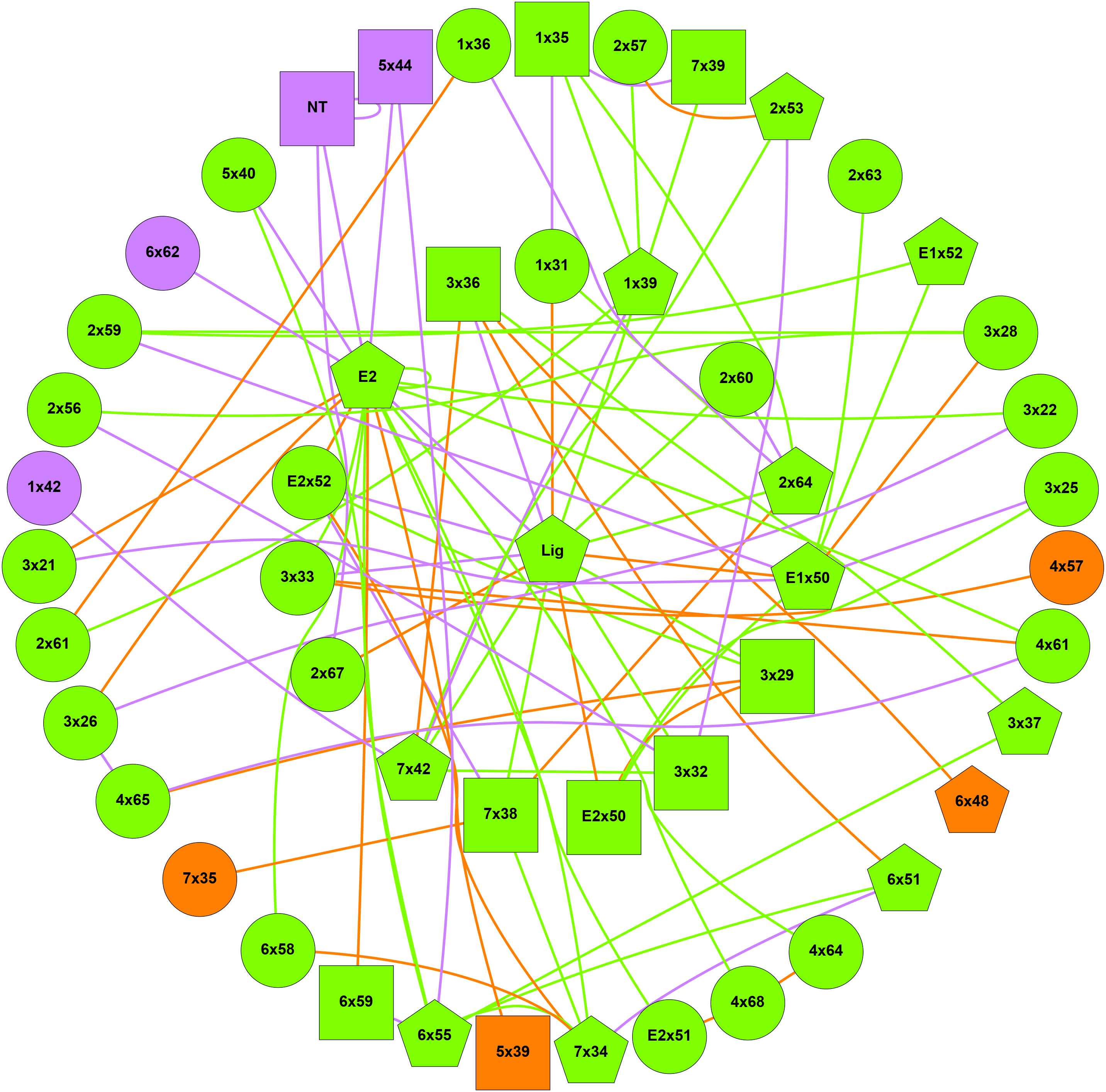 Purple: nodes, hubs and links specific of alicarboxylic_off network