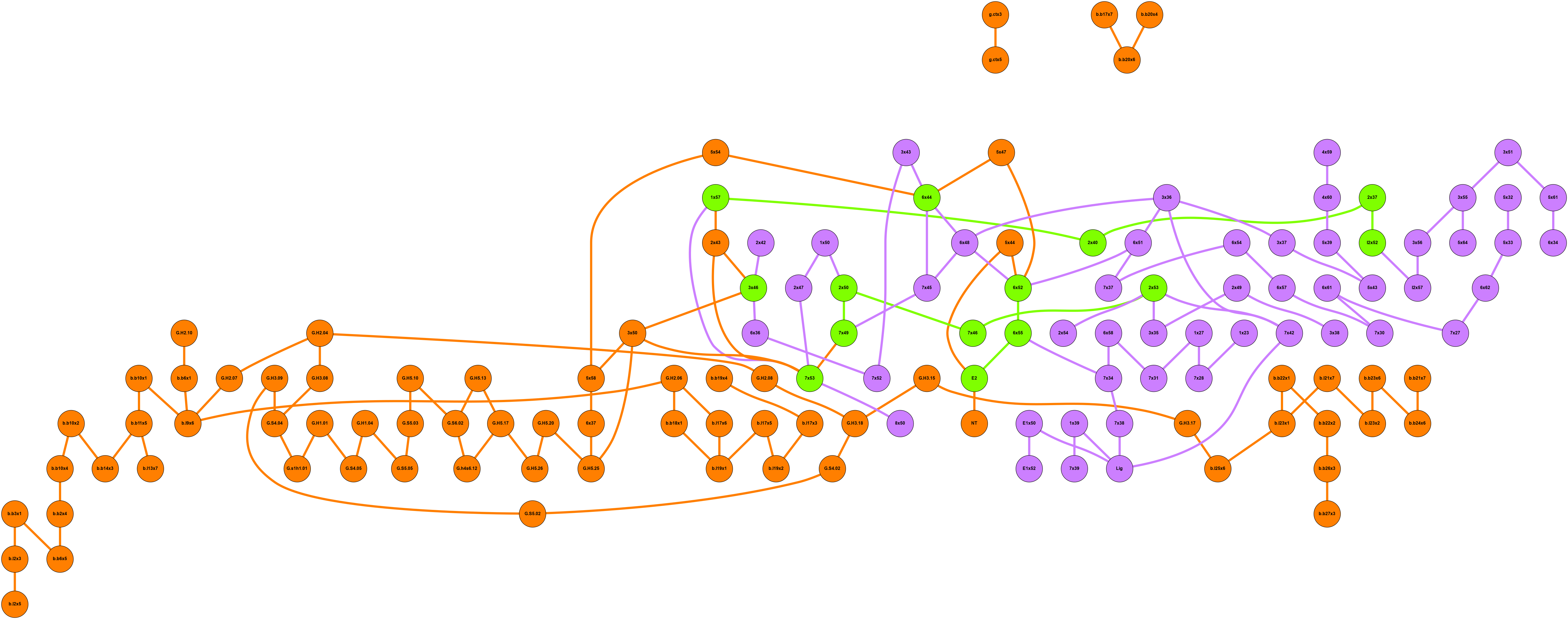 Orange: nodes, hubs and links specific of alicarboxylic_on_gp network