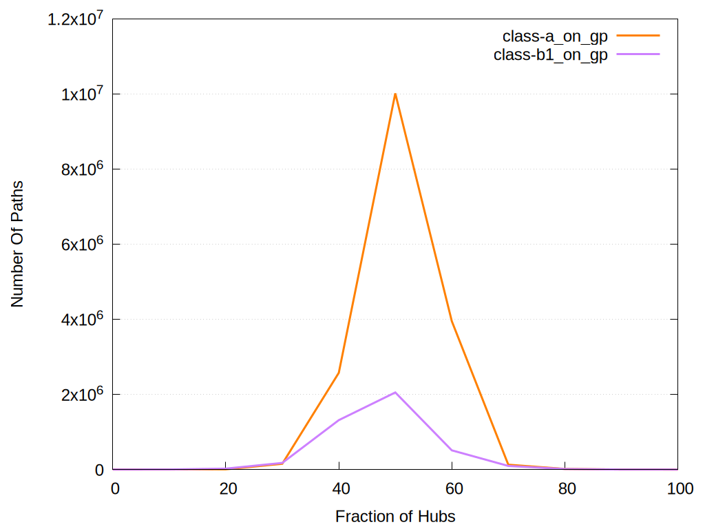 Orange: nodes, hubs and links specific of class-a_on_gp network
