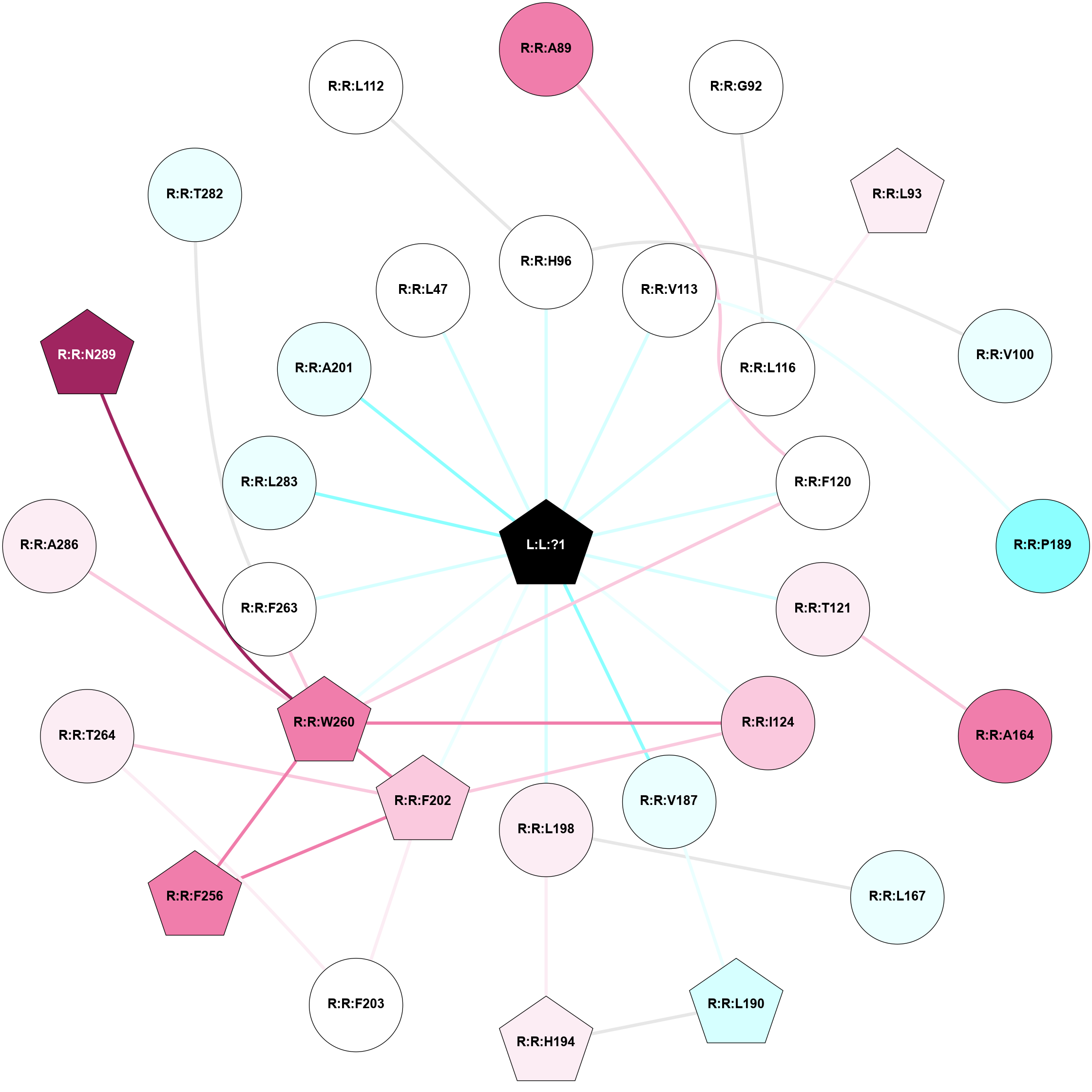 (Click to enlarge 🔍) | | Node1 | Node2 | LinkStrength | Comm | IsNode1Hub? | IsNode2Hub? | Node1Cons | Node2Cons | Node1Shell | Node2Shell | | L:L:?1 | R:R:H96 | 7.84 | 2 | Yes | No | 0 | 5 | 0 | 1 | | L:L:?1 | R:R:V113 | 4.54 | 2 | Yes | No | 0 | 5 | 0 | 1 | | L:L:?1 | R:R:L116 | 7.38 | 2 | Yes | No | 0 | 5 | 0 | 1 | | L:L:?1 | R:R:F120 | 5.57 | 2 | Yes | No | 0 | 5 | 0 | 1 | | L:L:?1 | R:R:T121 | 5.61 | 2 | Yes | No | 0 | 6 | 0 | 1 | | L:L:?1 | R:R:I124 | 7.61 | 2 | Yes | No | 0 | 7 | 0 | 1 | | L:L:?1 | R:R:V187 | 4.54 | 2 | Yes | No | 0 | 4 | 0 | 1 | | L:L:?1 | R:R:L198 | 3.16 | 2 | Yes | No | 0 | 6 | 0 | 1 | | L:L:?1 | R:R:F202 | 5.57 | 2 | Yes | Yes | 0 | 7 | 0 | 1 | | L:L:?1 | R:R:W260 | 6.07 | 2 | Yes | Yes | 0 | 8 | 0 | 1 | | L:L:?1 | R:R:F263 | 5.57 | 2 | Yes | No | 0 | 5 | 0 | 1 | | L:L:?1 | R:R:L283 | 5.27 | 2 | Yes | No | 0 | 4 | 0 | 1 | | R:R:A89 | R:R:F120 | 4.16 | 0 | No | No | 8 | 5 | 2 | 1 | | R:R:G92 | R:R:L116 | 3.42 | 0 | No | No | 5 | 5 | 2 | 1 | | R:R:L116 | R:R:L93 | 4.15 | 0 | No | Yes | 5 | 6 | 1 | 2 | | R:R:H96 | R:R:V100 | 6.92 | 0 | No | No | 5 | 4 | 1 | 2 | | R:R:P189 | R:R:V113 | 10.6 | 0 | No | No | 2 | 5 | 2 | 1 | | R:R:F120 | R:R:W260 | 7.02 | 2 | No | Yes | 5 | 8 | 1 | 1 | | R:R:A164 | R:R:T121 | 3.36 | 0 | No | No | 8 | 6 | 2 | 1 | | R:R:F202 | R:R:I124 | 3.77 | 2 | Yes | No | 7 | 7 | 1 | 1 | | R:R:I124 | R:R:W260 | 10.57 | 2 | No | Yes | 7 | 8 | 1 | 1 | | R:R:L167 | R:R:L198 | 4.15 | 0 | No | No | 4 | 6 | 2 | 1 | | R:R:L190 | R:R:V187 | 8.94 | 7 | Yes | No | 3 | 4 | 2 | 1 | | R:R:H194 | R:R:L190 | 3.86 | 7 | Yes | Yes | 6 | 3 | 2 | 2 | | R:R:H194 | R:R:L198 | 11.57 | 7 | Yes | No | 6 | 6 | 2 | 1 | | R:R:F202 | R:R:F203 | 5.36 | 2 | Yes | No | 7 | 5 | 1 | 2 | | R:R:F202 | R:R:F256 | 4.29 | 2 | Yes | Yes | 7 | 8 | 1 | 2 | | R:R:F202 | R:R:W260 | 5.01 | 2 | Yes | Yes | 7 | 8 | 1 | 1 | | R:R:F202 | R:R:T264 | 12.97 | 2 | Yes | No | 7 | 6 | 1 | 2 | | R:R:F203 | R:R:T264 | 3.89 | 2 | No | No | 5 | 6 | 2 | 2 | | R:R:F256 | R:R:W260 | 4.01 | 2 | Yes | Yes | 8 | 8 | 2 | 1 | | R:R:F263 | R:R:W260 | 4.01 | 2 | No | Yes | 5 | 8 | 1 | 1 | | R:R:A286 | R:R:W260 | 7.78 | 0 | No | Yes | 6 | 8 | 2 | 1 | | R:R:N289 | R:R:W260 | 6.78 | 0 | Yes | Yes | 9 | 8 | 2 | 1 | | R:R:F263 | R:R:T282 | 6.49 | 2 | No | No | 5 | 4 | 1 | 2 | | R:R:H96 | R:R:L112 | 2.57 | 0 | No | No | 5 | 5 | 1 | 2 | | L:L:?1 | R:R:A201 | 2.4 | 2 | Yes | No | 0 | 4 | 0 | 1 | | L:L:?1 | R:R:L47 | 2.11 | 2 | Yes | No | 0 | 5 | 0 | 1 | |