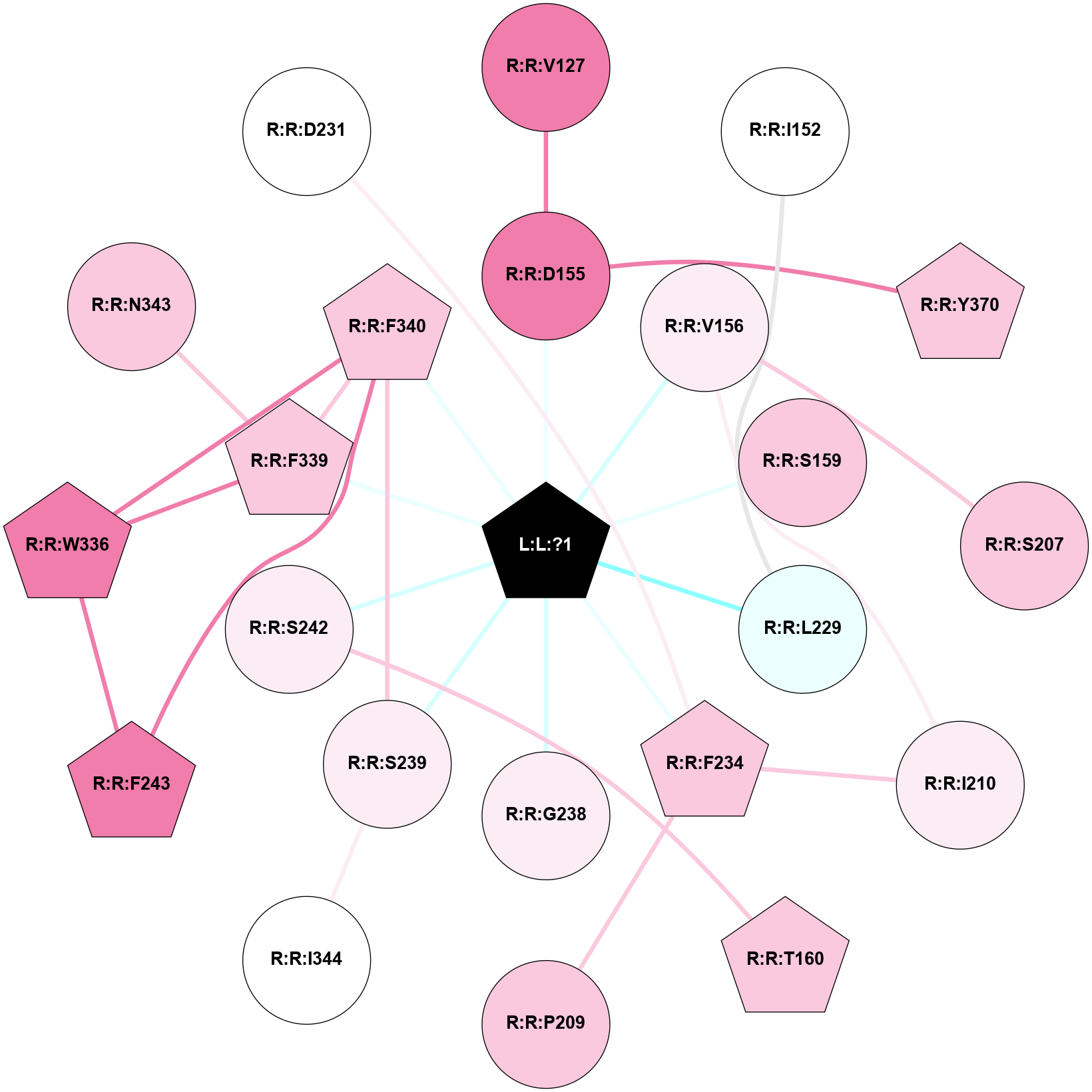 (Click to enlarge 🔍) | | Node1 | Node2 | LinkStrength | Comm | IsNode1Hub? | IsNode2Hub? | Node1Cons | Node2Cons | Node1Shell | Node2Shell | | L:L:?1 | R:R:W151 | 6.94 | 1 | Yes | Yes | 0 | 5 | 0 | 1 | | L:L:?1 | R:R:D155 | 19.3 | 1 | Yes | No | 0 | 8 | 0 | 1 | | L:L:?1 | R:R:V156 | 4.54 | 1 | Yes | No | 0 | 6 | 0 | 1 | | L:L:?1 | R:R:L228 | 9.84 | 1 | Yes | Yes | 0 | 4 | 0 | 1 | | L:L:?1 | R:R:F339 | 17.32 | 1 | Yes | Yes | 0 | 7 | 0 | 1 | | L:L:?1 | R:R:N343 | 5.58 | 1 | Yes | Yes | 0 | 7 | 0 | 1 | | L:L:?1 | R:R:N363 | 5.58 | 1 | Yes | No | 0 | 4 | 0 | 1 | | R:R:D155 | R:R:V127 | 7.3 | 1 | No | No | 8 | 8 | 1 | 2 | | R:R:V127 | R:R:Y370 | 3.79 | 1 | No | Yes | 8 | 7 | 2 | 2 | | R:R:V130 | R:R:W151 | 14.71 | 0 | No | Yes | 4 | 5 | 2 | 1 | | R:R:N363 | R:R:Y139 | 22.1 | 0 | No | Yes | 4 | 3 | 1 | 2 | | R:R:W141 | R:R:W151 | 8.43 | 1 | Yes | Yes | 7 | 5 | 2 | 1 | | R:R:C227 | R:R:W141 | 10.45 | 1 | No | Yes | 9 | 7 | 2 | 2 | | R:R:C227 | R:R:W151 | 5.22 | 1 | No | Yes | 9 | 5 | 2 | 1 | | R:R:D155 | R:R:Y370 | 5.75 | 1 | No | Yes | 8 | 7 | 1 | 2 | | R:R:S207 | R:R:V156 | 4.85 | 0 | No | No | 7 | 6 | 2 | 1 | | R:R:I210 | R:R:V156 | 4.61 | 0 | No | No | 6 | 6 | 2 | 1 | | R:R:K223 | R:R:L228 | 4.23 | 0 | No | Yes | 3 | 4 | 2 | 1 | | R:R:N343 | R:R:V235 | 4.43 | 1 | Yes | No | 7 | 6 | 1 | 2 | | R:R:F339 | R:R:W336 | 7.02 | 1 | Yes | Yes | 7 | 8 | 1 | 2 | | R:R:F339 | R:R:N343 | 9.67 | 1 | Yes | Yes | 7 | 7 | 1 | 1 | | R:R:F339 | R:R:L362 | 6.09 | 1 | Yes | No | 7 | 3 | 1 | 2 | | R:R:F339 | R:R:V366 | 5.24 | 1 | Yes | No | 7 | 6 | 1 | 2 | | R:R:L362 | R:R:N343 | 8.24 | 1 | No | Yes | 3 | 7 | 2 | 1 | | R:R:V366 | R:R:Y370 | 7.57 | 0 | No | Yes | 6 | 7 | 2 | 2 | | R:R:A230 | R:R:L228 | 1.58 | 0 | No | Yes | 3 | 4 | 2 | 1 | | R:R:L228 | R:R:S226 | 1.5 | 0 | Yes | No | 4 | 4 | 1 | 2 | |