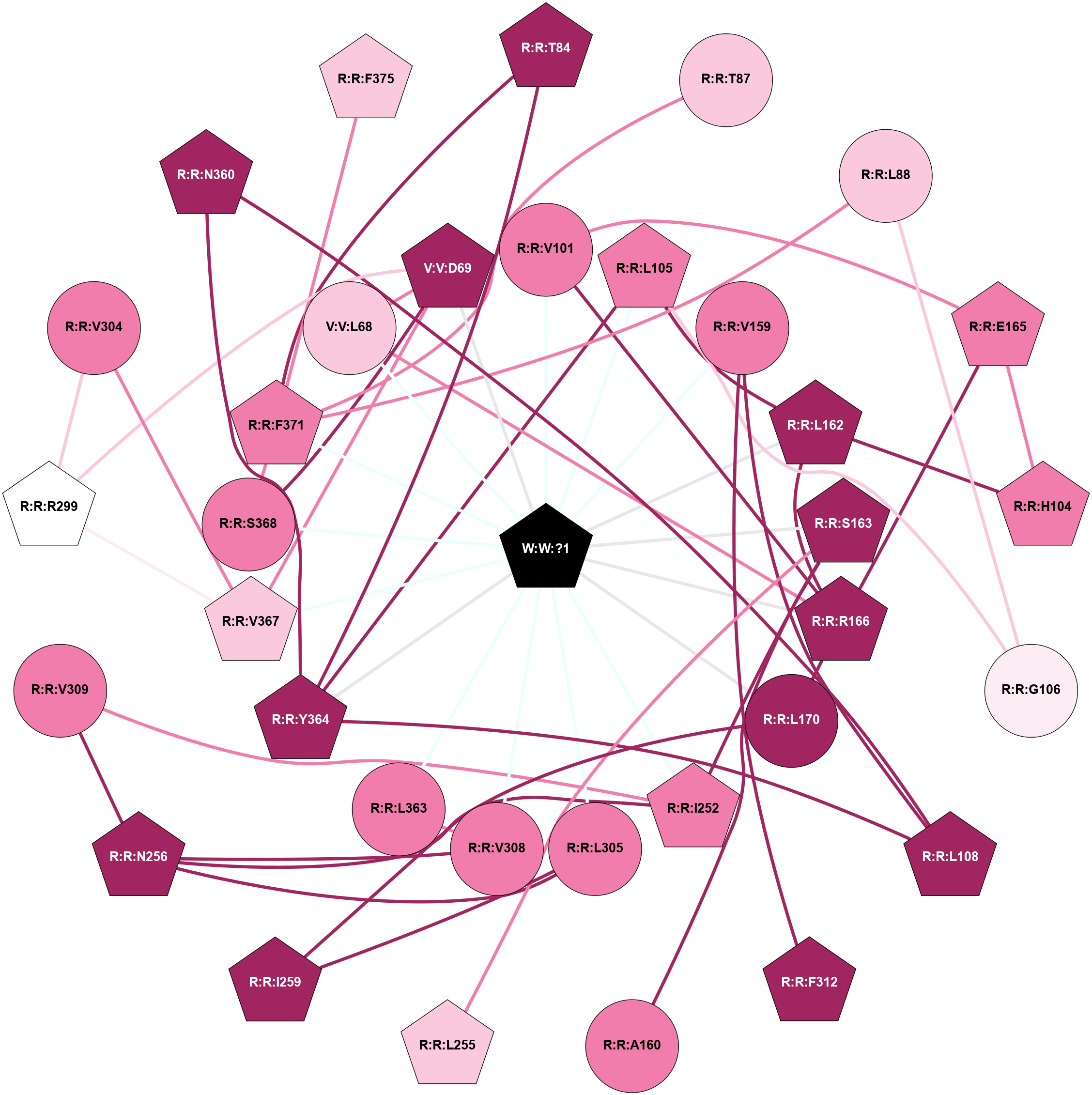 (Click to enlarge 🔍) | | Node1 | Node2 | LinkStrength | Comm | IsNode1Hub? | IsNode2Hub? | Node1Cons | Node2Cons | Node1Shell | Node2Shell | | K:K:L4 | K:K:L8 | 5.54 | 4 | No | No | 9 | 9 | 1 | 1 | | K:K:L4 | R:R:G301 | 5.13 | 4 | No | No | 9 | 8 | 1 | 2 | | K:K:L4 | W:W:?1 | 7.57 | 4 | No | Yes | 9 | 0 | 1 | 0 | | K:K:E5 | R:R:S368 | 11.5 | 4 | No | No | 9 | 8 | 1 | 1 | | K:K:E5 | R:R:N370 | 5.26 | 4 | No | No | 9 | 7 | 1 | 2 | | K:K:E5 | W:W:?1 | 19.01 | 4 | No | Yes | 9 | 0 | 1 | 0 | | K:K:L8 | W:W:?1 | 4.73 | 4 | No | Yes | 9 | 0 | 1 | 0 | | R:R:F371 | R:R:T84 | 5.19 | 4 | Yes | No | 8 | 9 | 1 | 2 | | R:R:F371 | R:R:T87 | 3.89 | 4 | Yes | No | 8 | 7 | 1 | 2 | | R:R:R166 | R:R:V101 | 6.54 | 4 | Yes | No | 9 | 8 | 1 | 2 | | R:R:L105 | R:R:L162 | 6.92 | 4 | No | No | 8 | 9 | 1 | 1 | | R:R:L105 | R:R:Y364 | 11.72 | 4 | No | Yes | 8 | 9 | 1 | 1 | | R:R:L105 | W:W:?1 | 3.78 | 4 | No | Yes | 8 | 0 | 1 | 0 | | R:R:L108 | R:R:V159 | 4.47 | 4 | Yes | Yes | 9 | 8 | 2 | 1 | | R:R:L108 | R:R:N360 | 6.87 | 4 | Yes | No | 9 | 9 | 2 | 2 | | R:R:L108 | R:R:Y364 | 3.52 | 4 | Yes | Yes | 9 | 9 | 2 | 1 | | R:R:I252 | R:R:V159 | 4.61 | 4 | No | Yes | 8 | 8 | 2 | 1 | | R:R:F312 | R:R:V159 | 3.93 | 4 | Yes | Yes | 9 | 8 | 2 | 1 | | R:R:V159 | W:W:?1 | 4.07 | 4 | Yes | Yes | 8 | 0 | 1 | 0 | | R:R:L162 | W:W:?1 | 13.24 | 4 | No | Yes | 9 | 0 | 1 | 0 | | R:R:I170 | R:R:R166 | 5.01 | 4 | No | Yes | 9 | 9 | 1 | 1 | | R:R:R166 | W:W:?1 | 41.5 | 4 | Yes | Yes | 9 | 0 | 1 | 0 | | R:R:I170 | W:W:?1 | 4.88 | 4 | No | Yes | 9 | 0 | 1 | 0 | | R:R:F312 | R:R:I252 | 3.77 | 4 | Yes | No | 9 | 8 | 2 | 2 | | R:R:V304 | R:R:V367 | 4.81 | 0 | No | No | 8 | 7 | 2 | 1 | | R:R:V308 | W:W:?1 | 11.2 | 0 | No | Yes | 8 | 0 | 1 | 0 | | R:R:N360 | R:R:Y364 | 3.49 | 4 | No | Yes | 9 | 9 | 2 | 1 | | R:R:F371 | R:R:Y364 | 4.13 | 4 | Yes | Yes | 8 | 9 | 1 | 1 | | R:R:Y364 | W:W:?1 | 7.21 | 4 | Yes | Yes | 9 | 0 | 1 | 0 | | R:R:F371 | R:R:N365 | 4.83 | 4 | Yes | No | 8 | 7 | 1 | 2 | | R:R:F375 | R:R:N365 | 18.12 | 4 | Yes | No | 7 | 7 | 2 | 2 | | R:R:V367 | W:W:?1 | 7.13 | 0 | No | Yes | 7 | 0 | 1 | 0 | | R:R:S368 | W:W:?1 | 5.13 | 4 | No | Yes | 8 | 0 | 1 | 0 | | R:R:F371 | R:R:F375 | 5.36 | 4 | Yes | Yes | 8 | 7 | 1 | 2 | | R:R:F371 | W:W:?1 | 7.49 | 4 | Yes | Yes | 8 | 0 | 1 | 0 | | R:R:I170 | R:R:L263 | 2.85 | 4 | No | No | 9 | 8 | 1 | 2 | | K:K:D3 | R:R:S368 | 1.47 | 0 | No | No | 9 | 8 | 2 | 1 | | R:R:A169 | R:R:R166 | 1.38 | 0 | No | Yes | 8 | 9 | 2 | 1 | |