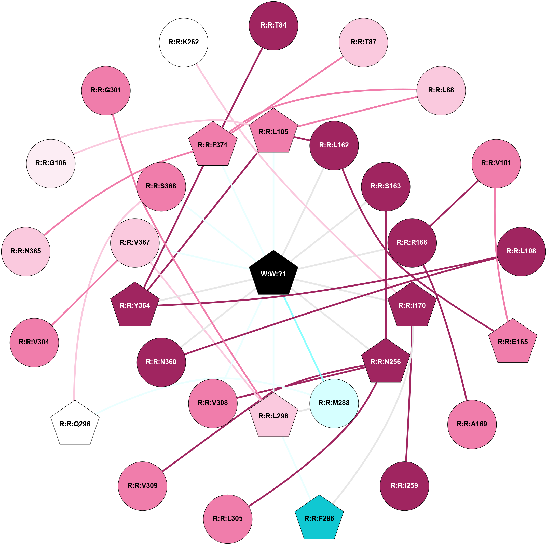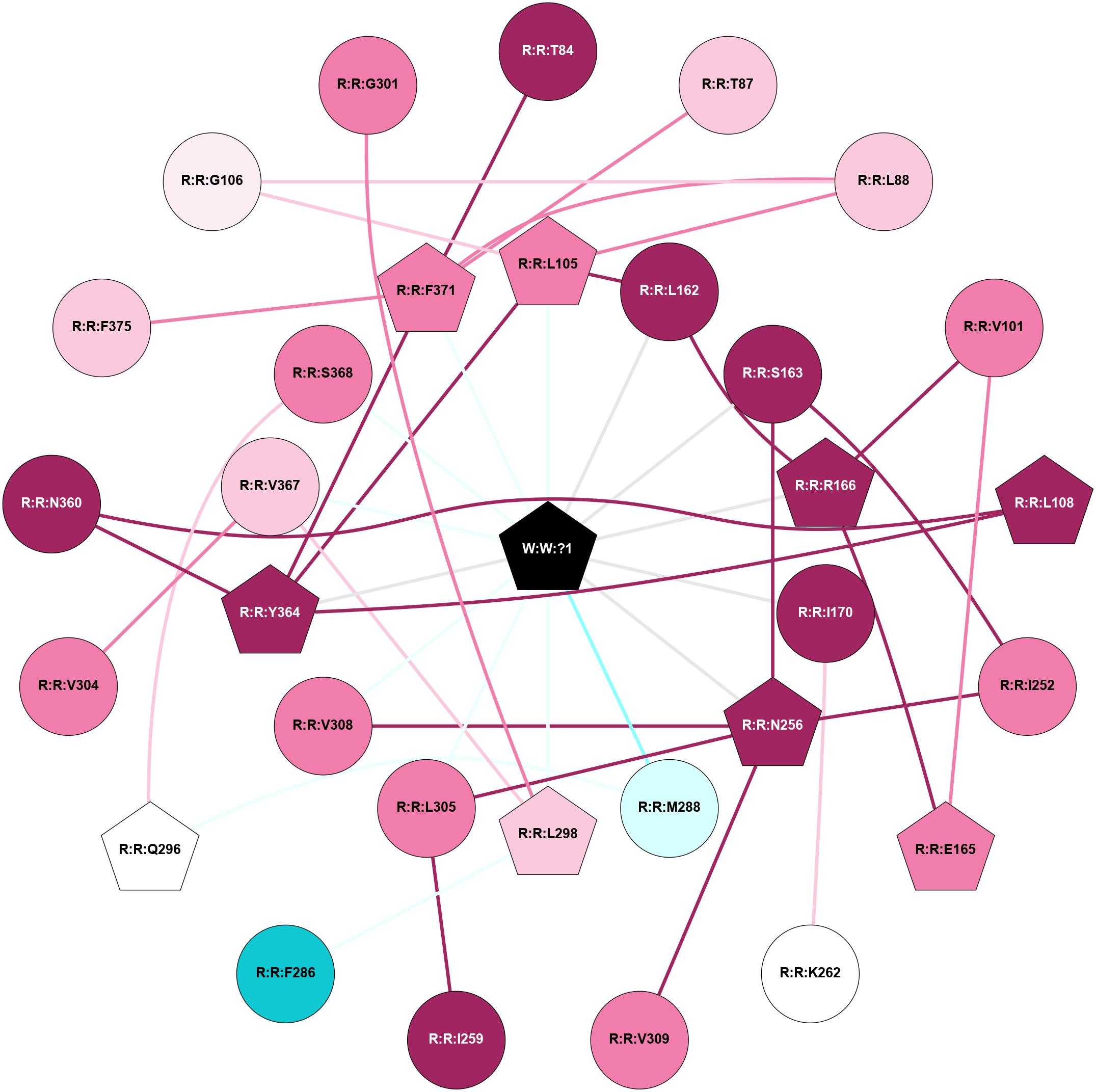 (Click to enlarge 🔍) | | Node1 | Node2 | LinkStrength | Comm | IsNode1Hub? | IsNode2Hub? | Node1Cons | Node2Cons | Node1Shell | Node2Shell | | R:R:L105 | W:W:?1 | 5.67 | 1 | Yes | Yes | 8 | 0 | 1 | 0 | | R:R:L162 | W:W:?1 | 17.97 | 1 | No | Yes | 9 | 0 | 1 | 0 | | R:R:S163 | W:W:?1 | 4.1 | 1 | No | Yes | 9 | 0 | 1 | 0 | | R:R:R166 | W:W:?1 | 22.41 | 1 | Yes | Yes | 9 | 0 | 1 | 0 | | R:R:I170 | W:W:?1 | 4.88 | 0 | No | Yes | 9 | 0 | 1 | 0 | | R:R:N256 | W:W:?1 | 5.63 | 1 | Yes | Yes | 9 | 0 | 1 | 0 | | R:R:M288 | W:W:?1 | 5.8 | 0 | No | Yes | 3 | 0 | 1 | 0 | | R:R:L298 | W:W:?1 | 11.35 | 1 | Yes | Yes | 7 | 0 | 1 | 0 | | R:R:L305 | W:W:?1 | 5.67 | 1 | No | Yes | 8 | 0 | 1 | 0 | | R:R:V308 | W:W:?1 | 10.18 | 1 | No | Yes | 8 | 0 | 1 | 0 | | R:R:Y364 | W:W:?1 | 7.21 | 1 | Yes | Yes | 9 | 0 | 1 | 0 | | R:R:V367 | W:W:?1 | 4.07 | 1 | No | Yes | 7 | 0 | 1 | 0 | | R:R:S368 | W:W:?1 | 9.23 | 0 | No | Yes | 8 | 0 | 1 | 0 | | R:R:F371 | W:W:?1 | 7.49 | 1 | Yes | Yes | 8 | 0 | 1 | 0 | | R:R:F371 | R:R:T84 | 6.49 | 1 | Yes | No | 8 | 9 | 1 | 2 | | R:R:F371 | R:R:T87 | 7.78 | 1 | Yes | No | 8 | 7 | 1 | 2 | | R:R:L105 | R:R:L88 | 4.15 | 1 | Yes | No | 8 | 7 | 1 | 2 | | R:R:F371 | R:R:L88 | 3.65 | 1 | Yes | No | 8 | 7 | 1 | 2 | | R:R:E165 | R:R:V101 | 4.28 | 1 | Yes | No | 8 | 8 | 2 | 2 | | R:R:R166 | R:R:V101 | 10.46 | 1 | Yes | No | 9 | 8 | 1 | 2 | | R:R:L105 | R:R:L162 | 4.15 | 1 | Yes | No | 8 | 9 | 1 | 1 | | R:R:L105 | R:R:Y364 | 12.89 | 1 | Yes | Yes | 8 | 9 | 1 | 1 | | R:R:L108 | R:R:N360 | 8.24 | 1 | Yes | No | 9 | 9 | 2 | 2 | | R:R:L108 | R:R:Y364 | 3.52 | 1 | Yes | Yes | 9 | 9 | 2 | 1 | | R:R:L162 | R:R:R166 | 4.86 | 1 | No | Yes | 9 | 9 | 1 | 1 | | R:R:I252 | R:R:S163 | 6.19 | 1 | No | No | 8 | 9 | 2 | 1 | | R:R:N256 | R:R:S163 | 7.45 | 1 | Yes | No | 9 | 9 | 1 | 1 | | R:R:E165 | R:R:R166 | 13.96 | 1 | Yes | Yes | 8 | 9 | 2 | 1 | | R:R:I170 | R:R:K262 | 4.36 | 0 | No | No | 9 | 5 | 1 | 2 | | R:R:I252 | R:R:N256 | 4.25 | 1 | No | Yes | 8 | 9 | 2 | 1 | | R:R:L305 | R:R:N256 | 4.12 | 1 | No | Yes | 8 | 9 | 1 | 1 | | R:R:N256 | R:R:V308 | 4.43 | 1 | Yes | No | 9 | 8 | 1 | 1 | | R:R:N256 | R:R:V309 | 4.43 | 1 | Yes | No | 9 | 8 | 1 | 2 | | R:R:I259 | R:R:L305 | 7.14 | 0 | No | No | 9 | 8 | 2 | 1 | | R:R:F286 | R:R:L298 | 3.65 | 0 | No | Yes | 1 | 7 | 2 | 1 | | R:R:M288 | R:R:Q296 | 6.8 | 0 | No | Yes | 3 | 5 | 1 | 2 | | R:R:Q296 | R:R:S368 | 8.66 | 6 | Yes | No | 5 | 8 | 2 | 1 | | R:R:L298 | R:R:V367 | 4.47 | 1 | Yes | No | 7 | 7 | 1 | 1 | | R:R:V304 | R:R:V367 | 4.81 | 0 | No | No | 8 | 7 | 2 | 1 | | R:R:N360 | R:R:Y364 | 5.81 | 1 | No | Yes | 9 | 9 | 2 | 1 | | R:R:F371 | R:R:Y364 | 7.22 | 1 | Yes | Yes | 8 | 9 | 1 | 1 | | R:R:F371 | R:R:F375 | 5.36 | 1 | Yes | No | 8 | 7 | 1 | 2 | | R:R:G106 | R:R:L88 | 1.71 | 1 | No | No | 6 | 7 | 2 | 2 | | R:R:G106 | R:R:L105 | 1.71 | 1 | No | Yes | 6 | 8 | 2 | 1 | | R:R:G301 | R:R:L298 | 1.71 | 0 | No | Yes | 8 | 7 | 2 | 1 | |
