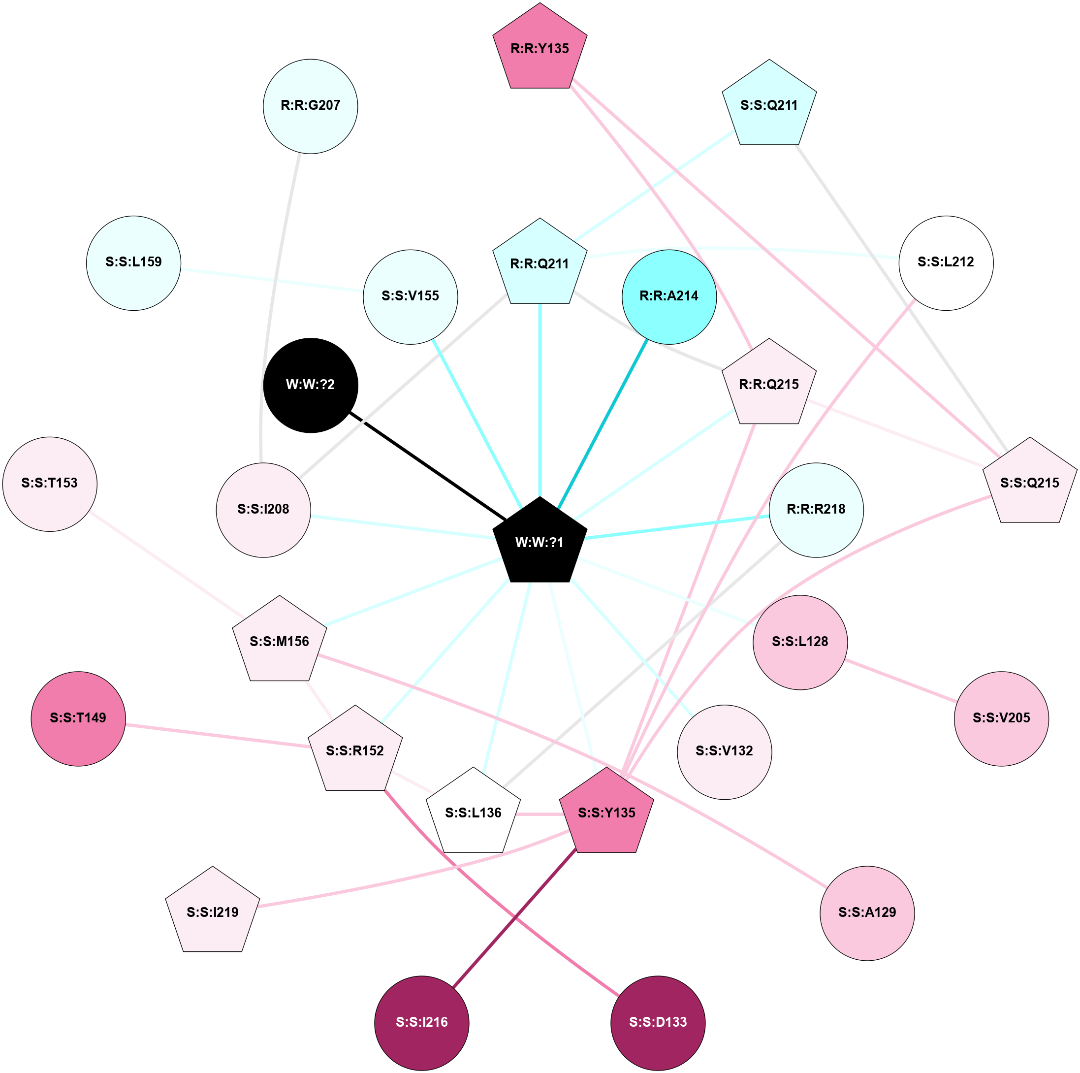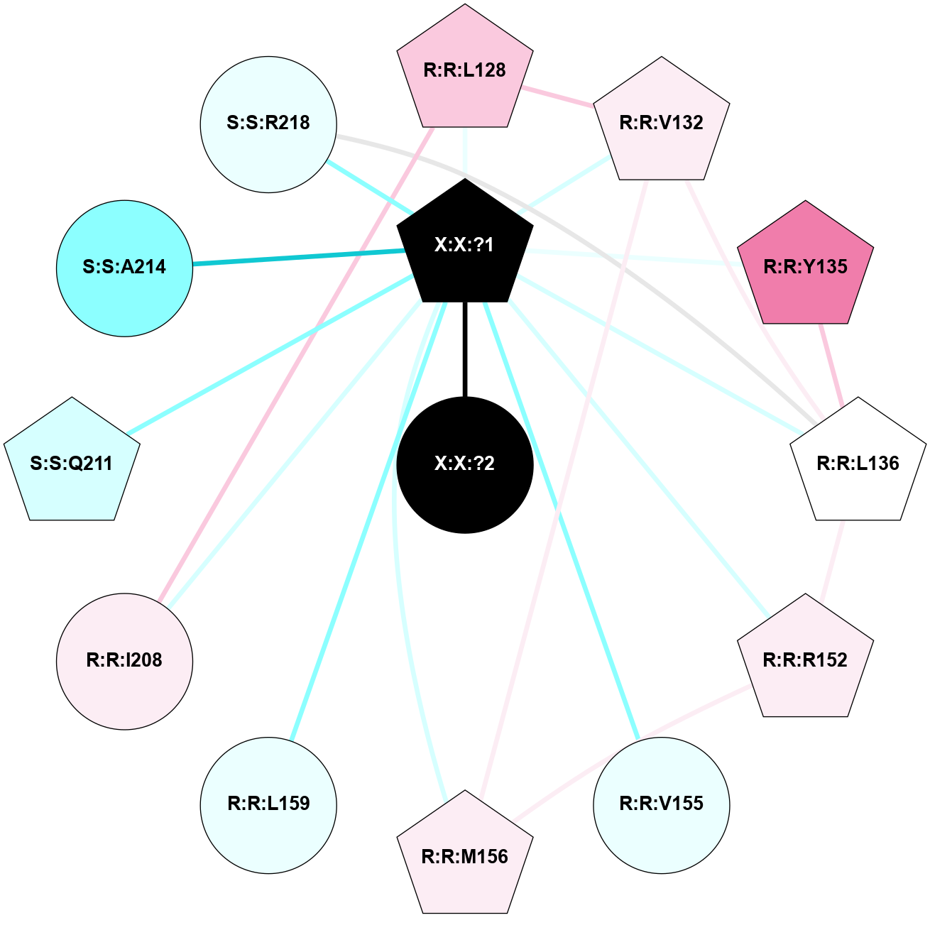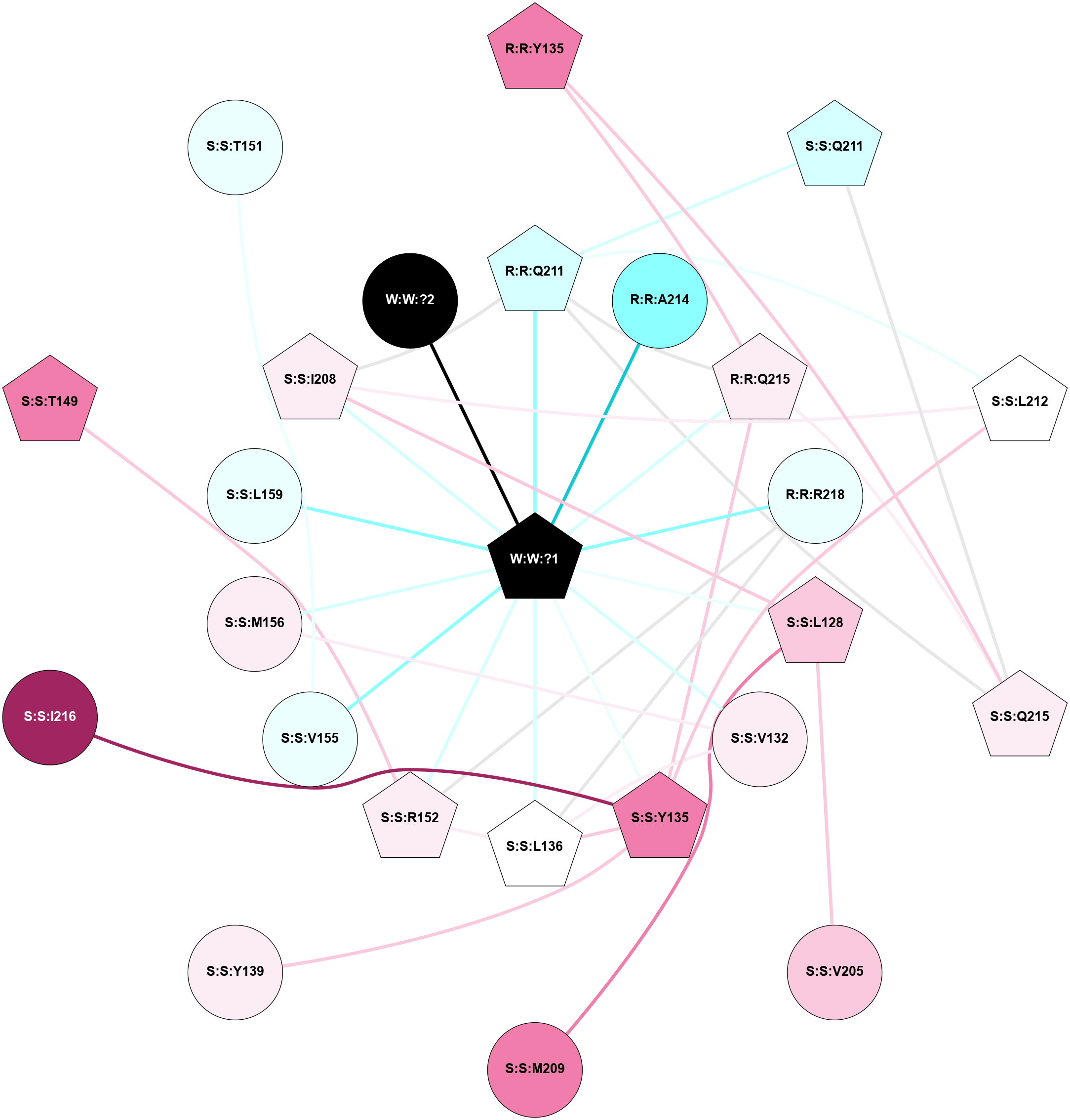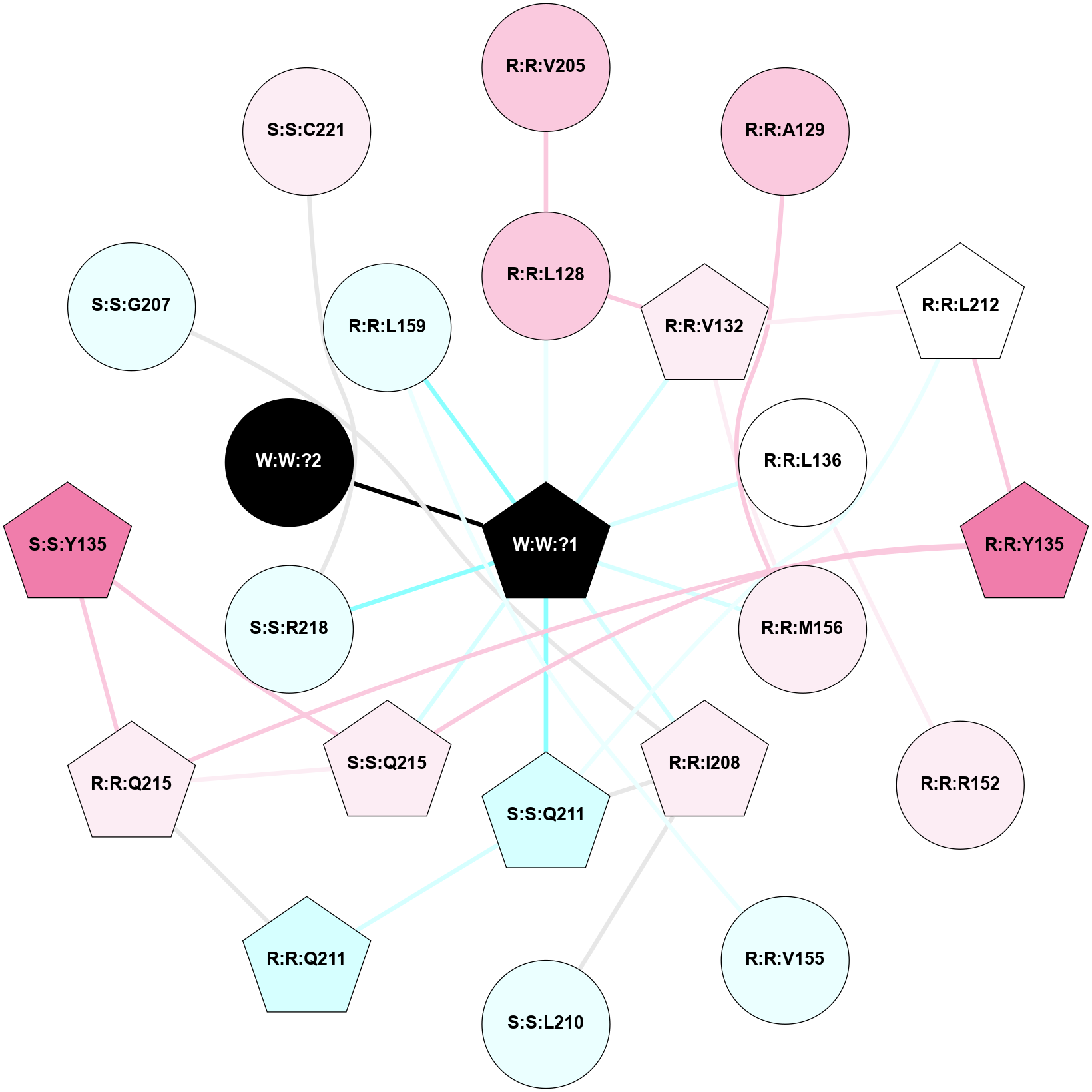 (Click to enlarge 🔍) | | Node1 | Node2 | LinkStrength | Comm | IsNode1Hub? | IsNode2Hub? | Node1Cons | Node2Cons | Node1Shell | Node2Shell | | R:R:L128 | R:R:V132 | 2.98 | 1 | No | Yes | 7 | 6 | 2 | 2 | | R:R:L128 | W:W:?1 | 3.9 | 1 | No | Yes | 7 | 0 | 2 | 1 | | R:R:M156 | R:R:V132 | 3.04 | 1 | No | Yes | 6 | 6 | 2 | 2 | | R:R:V132 | W:W:?1 | 8.4 | 1 | Yes | Yes | 6 | 0 | 2 | 1 | | R:R:L136 | W:W:?1 | 9.76 | 0 | No | Yes | 5 | 0 | 2 | 1 | | R:R:M156 | W:W:?1 | 3.99 | 1 | No | Yes | 6 | 0 | 2 | 1 | | R:R:I208 | S:S:Q211 | 8.23 | 1 | Yes | Yes | 6 | 3 | 2 | 2 | | R:R:I208 | W:W:?1 | 4.03 | 1 | Yes | Yes | 6 | 0 | 2 | 1 | | S:S:Q211 | W:W:?1 | 18.77 | 1 | Yes | Yes | 3 | 0 | 2 | 1 | | S:S:Q215 | W:W:?1 | 9.38 | 1 | Yes | Yes | 6 | 0 | 2 | 1 | | S:S:R218 | W:W:?1 | 10.28 | 0 | No | Yes | 4 | 0 | 2 | 1 | | W:W:?1 | W:W:?2 | 13.76 | 1 | Yes | No | 0 | 0 | 1 | 0 | | R:R:L159 | W:W:?1 | 1.95 | 0 | No | Yes | 4 | 0 | 2 | 1 | |