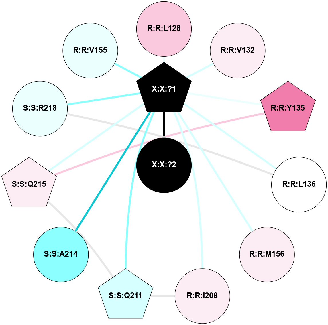 (Click to enlarge 🔍) | | Node1 | Node2 | LinkStrength | Comm | IsNode1Hub? | IsNode2Hub? | Node1Cons | Node2Cons | Node1Shell | Node2Shell | | R:R:Q211 | X:X:?1 | 11.26 | 0 | Yes | Yes | 3 | 0 | 2 | 1 | | R:R:R218 | S:S:R152 | 4.26 | 1 | No | Yes | 4 | 6 | 2 | 2 | | R:R:R218 | X:X:?1 | 15.42 | 1 | No | Yes | 4 | 0 | 2 | 1 | | S:S:L128 | S:S:V132 | 2.98 | 1 | Yes | Yes | 7 | 6 | 2 | 2 | | S:S:I208 | S:S:L128 | 4.28 | 1 | No | Yes | 6 | 7 | 2 | 2 | | S:S:L128 | X:X:?1 | 5.86 | 1 | Yes | Yes | 7 | 0 | 2 | 1 | | S:S:M156 | S:S:V132 | 3.04 | 1 | Yes | Yes | 6 | 6 | 2 | 2 | | S:S:V132 | X:X:?1 | 14.71 | 1 | Yes | Yes | 6 | 0 | 2 | 1 | | S:S:L136 | S:S:R152 | 12.15 | 1 | No | Yes | 5 | 6 | 2 | 2 | | S:S:L136 | X:X:?1 | 13.66 | 1 | No | Yes | 5 | 0 | 2 | 1 | | S:S:M156 | S:S:R152 | 3.72 | 1 | Yes | Yes | 6 | 6 | 2 | 2 | | S:S:R152 | X:X:?1 | 3.43 | 1 | Yes | Yes | 6 | 0 | 2 | 1 | | S:S:V155 | X:X:?1 | 4.2 | 0 | No | Yes | 4 | 0 | 2 | 1 | | S:S:M156 | X:X:?1 | 7.97 | 1 | Yes | Yes | 6 | 0 | 2 | 1 | | S:S:I208 | X:X:?1 | 14.09 | 1 | No | Yes | 6 | 0 | 2 | 1 | | X:X:?1 | X:X:?2 | 13.76 | 1 | Yes | No | 0 | 0 | 1 | 0 | | R:R:A214 | X:X:?1 | 2.22 | 0 | No | Yes | 2 | 0 | 2 | 1 | |