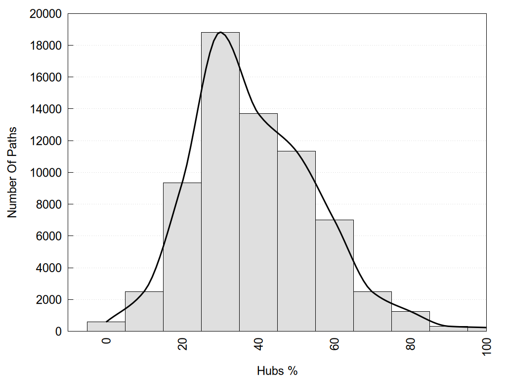 Hub1?, Hub2?: "Yes" if the corresponding node has more than 3 links, otherwise "No".