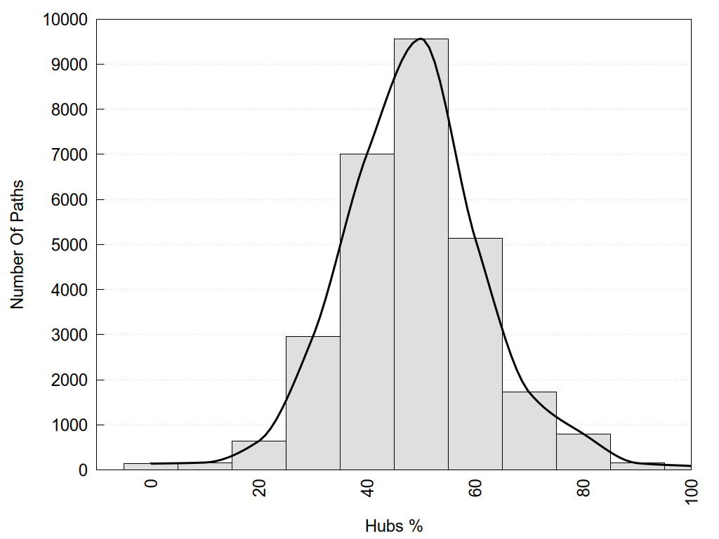 Hub1?, Hub2?: "Yes" if the corresponding node has more than 3 links, otherwise "No".