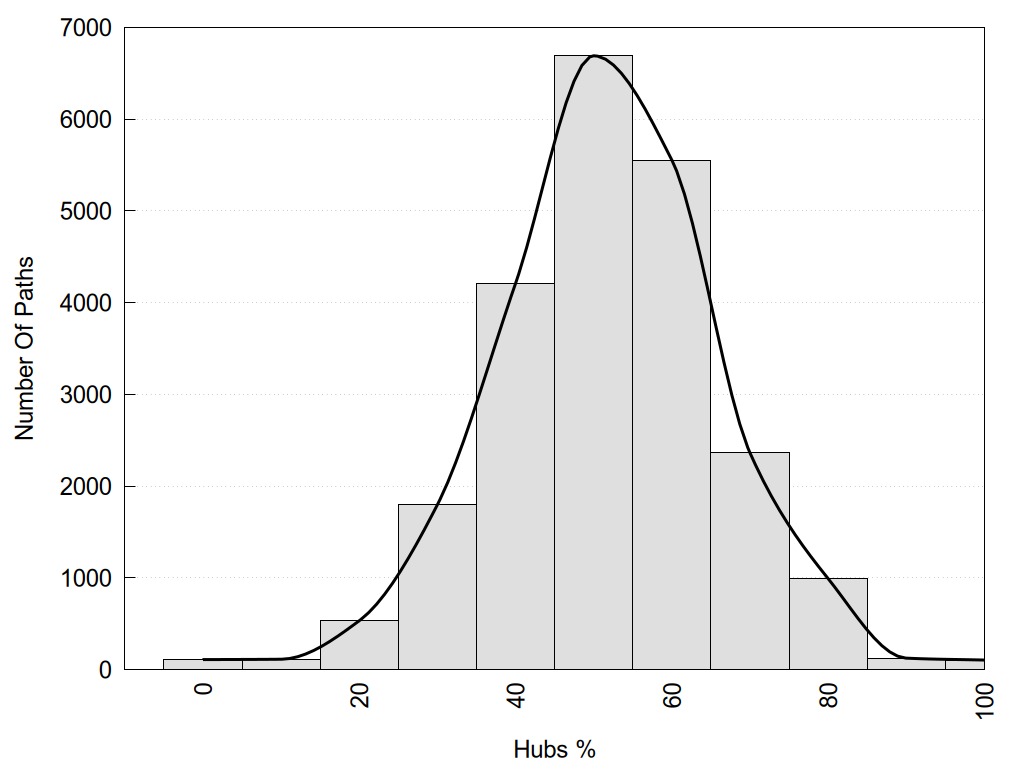 Hub1?, Hub2?: "Yes" if the corresponding node has more than 3 links, otherwise "No".