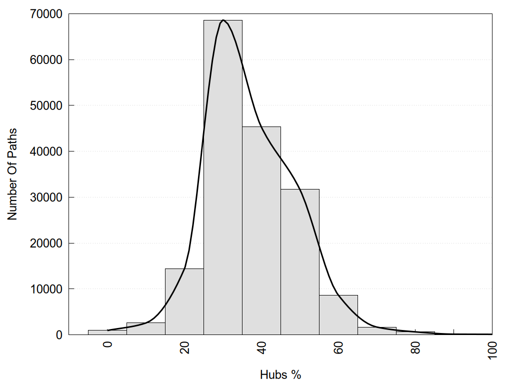 Hub1?, Hub2?: "Yes" if the corresponding node has more than 3 links, otherwise "No".