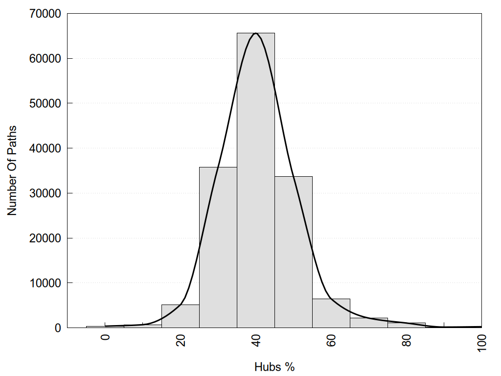 Hub1?, Hub2?: "Yes" if the corresponding node has more than 3 links, otherwise "No".