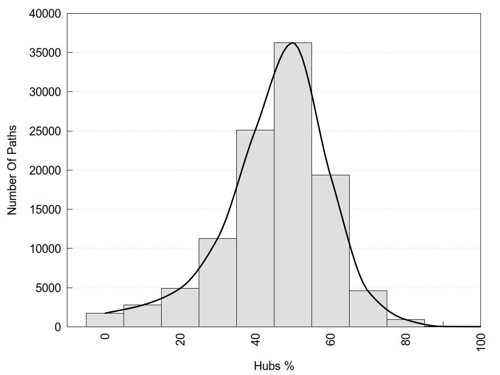 Hub1?, Hub2?: "Yes" if the corresponding node has more than 3 links, otherwise "No".
