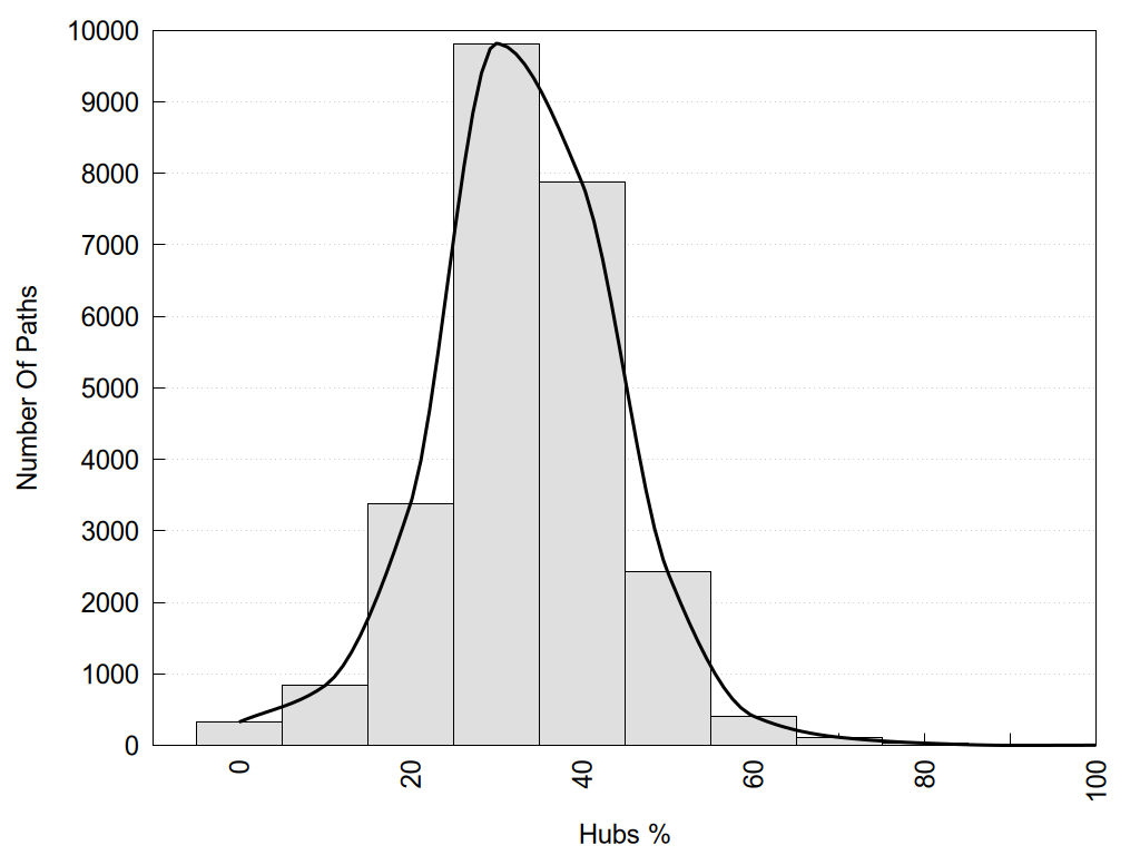 Hub1?, Hub2?: "Yes" if the corresponding node has more than 3 links, otherwise "No".