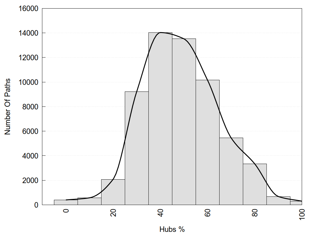 Hub1?, Hub2?: "Yes" if the corresponding node has more than 3 links, otherwise "No".