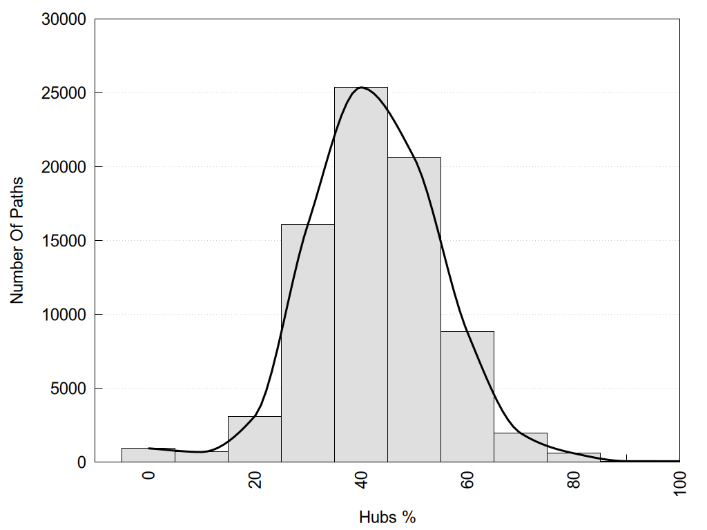 Hub1?, Hub2?: "Yes" if the corresponding node has more than 3 links, otherwise "No".