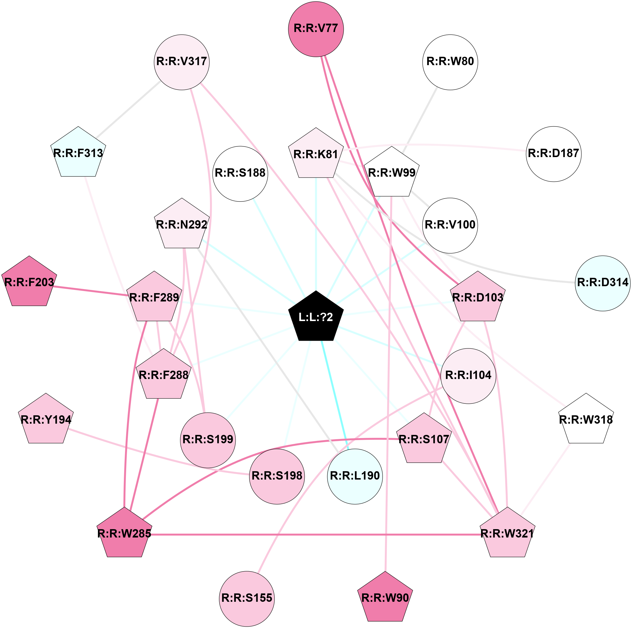 Links and nodes colored according to ConSurf Conservation Grade (See documentation): n/a 1 2 3 4 5 6 7 8 9 |