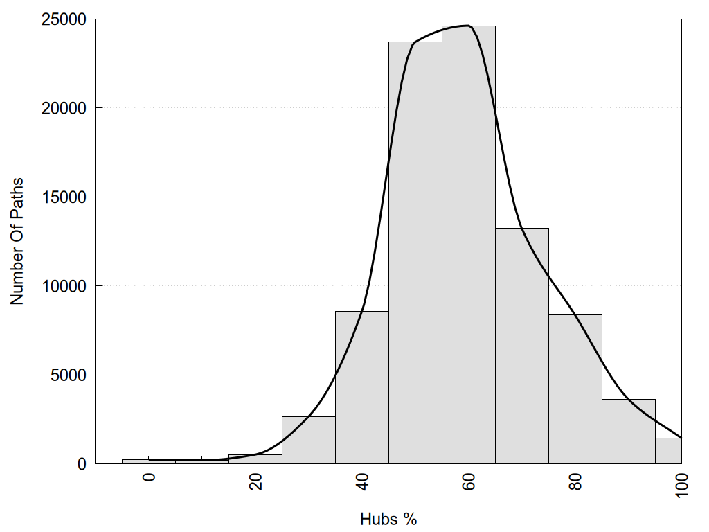 Hub1?, Hub2?: "Yes" if the corresponding node has more than 3 links, otherwise "No".
