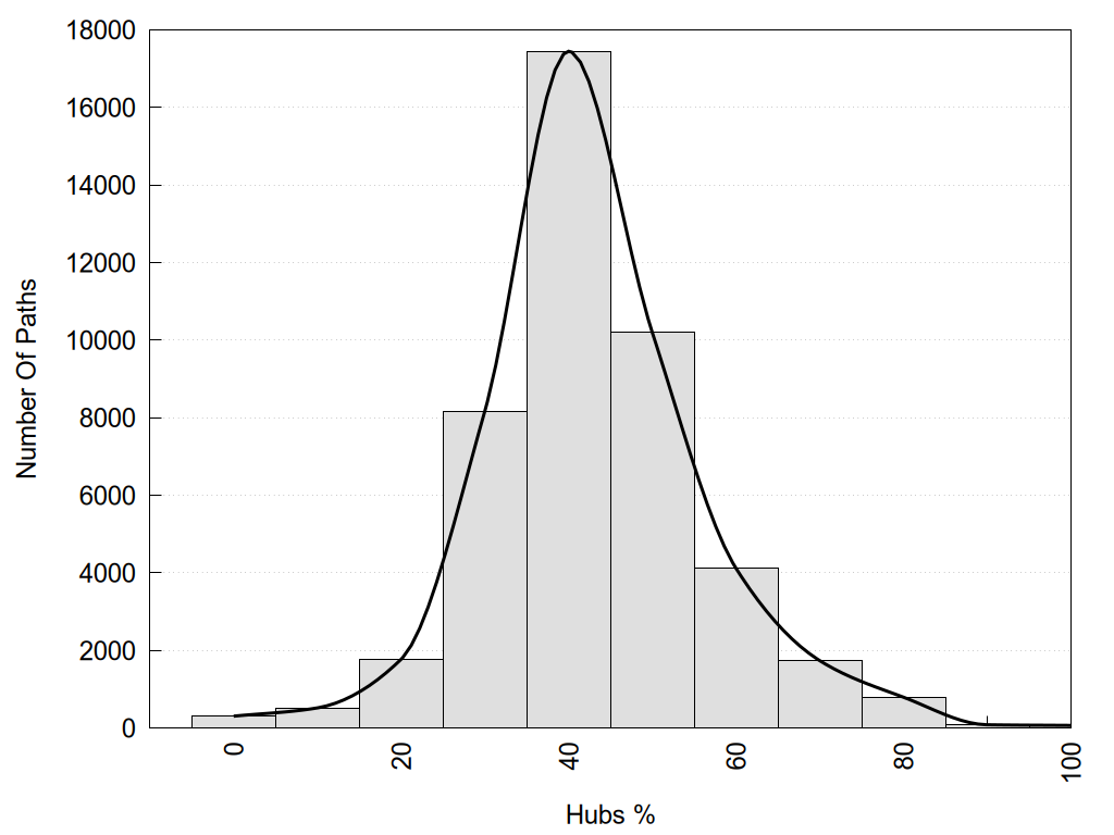 Hub1?, Hub2?: "Yes" if the corresponding node has more than 3 links, otherwise "No".