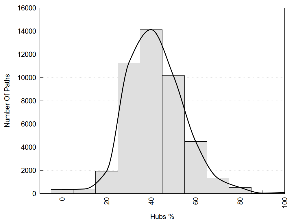 Hub1?, Hub2?: "Yes" if the corresponding node has more than 3 links, otherwise "No".