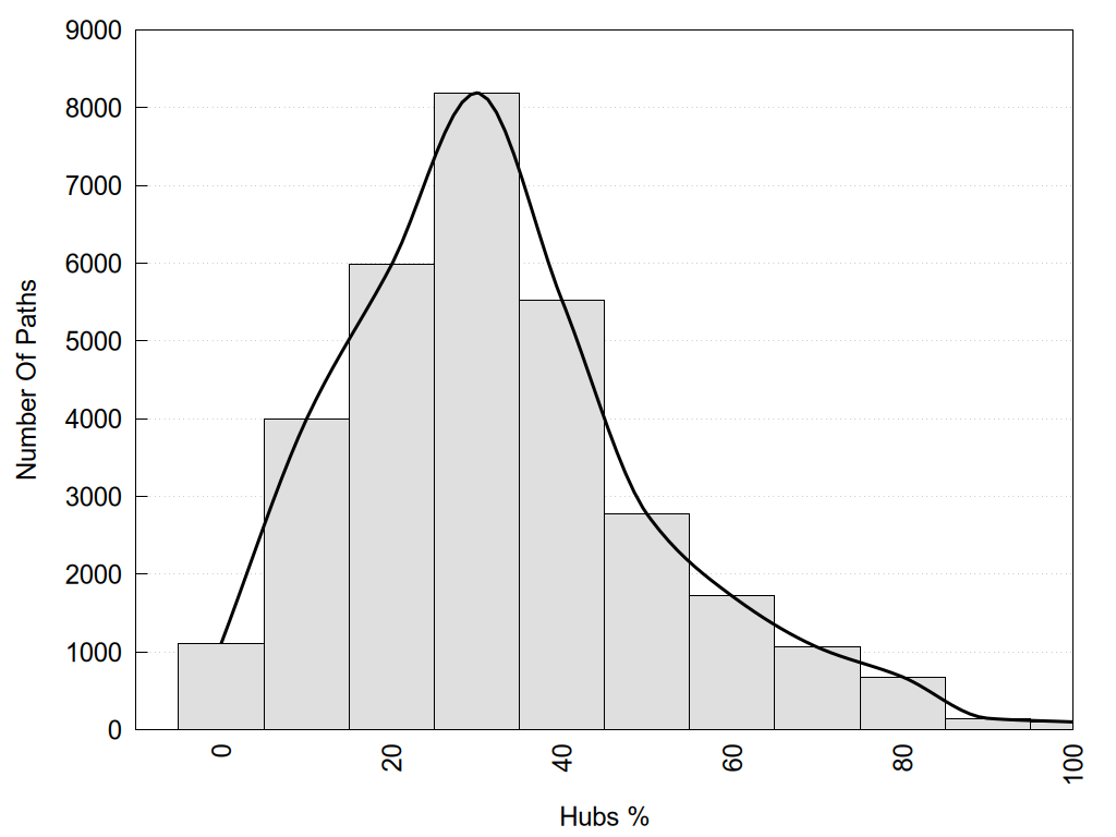 Hub1?, Hub2?: "Yes" if the corresponding node has more than 3 links, otherwise "No".