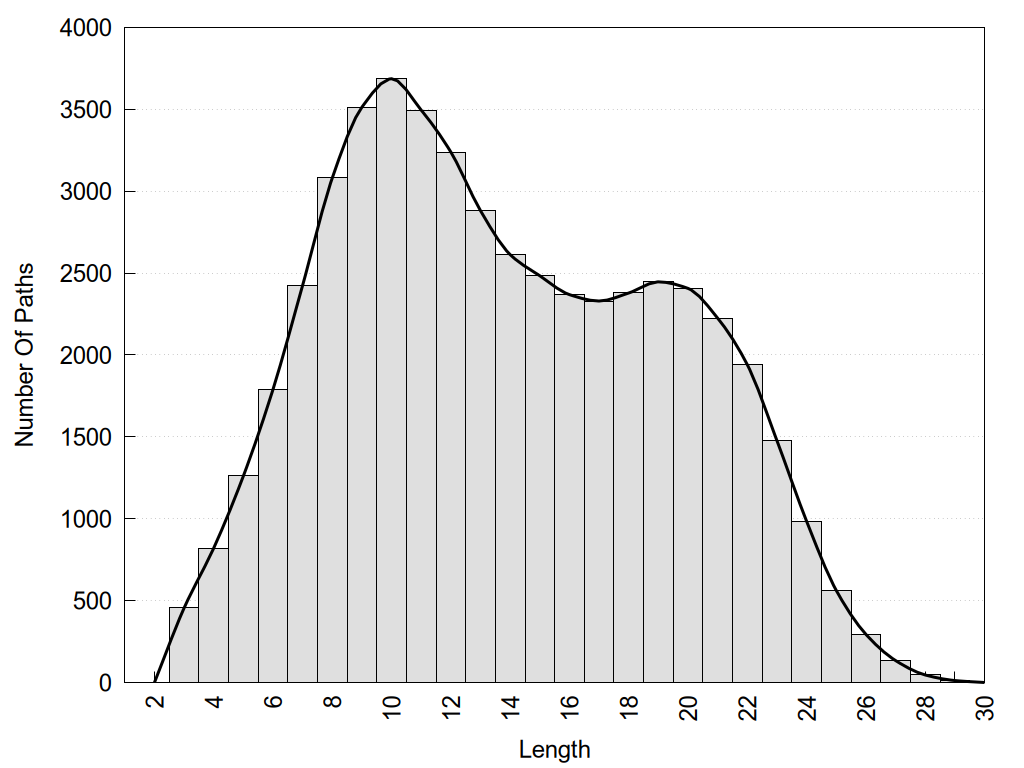 histograms of path distribution according to several parameters