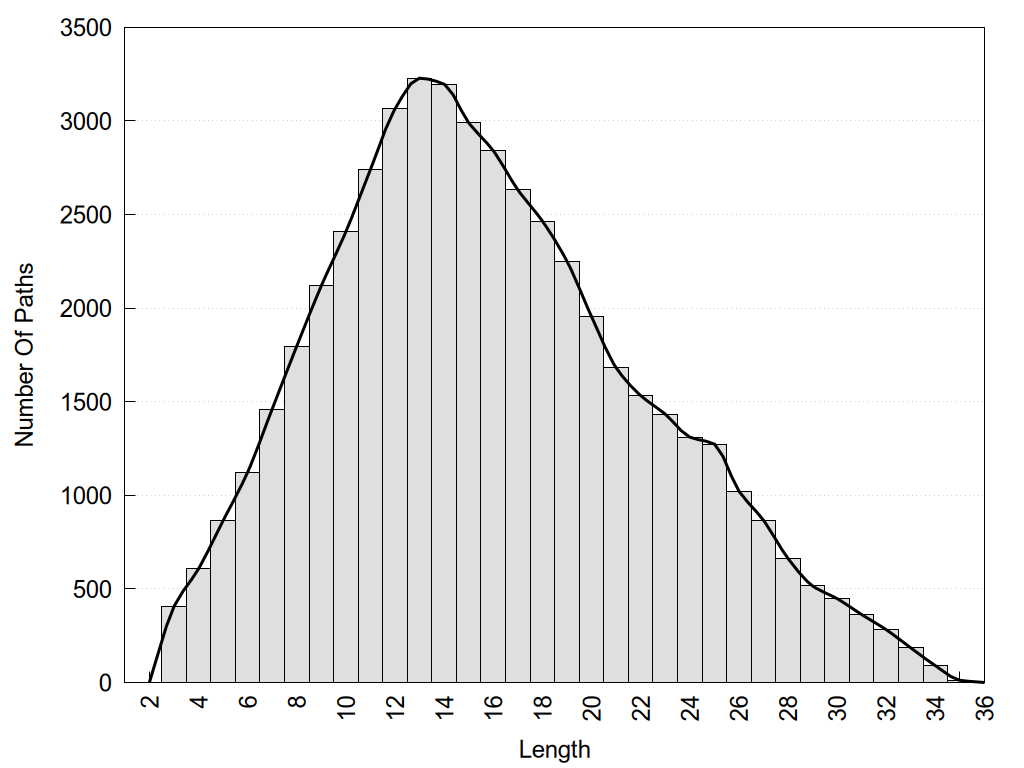 histograms of path distribution according to several parameters