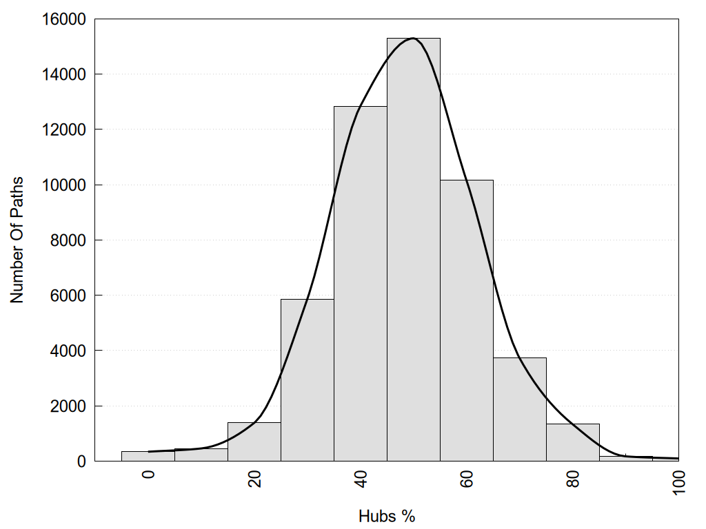 Hub1?, Hub2?: "Yes" if the corresponding node has more than 3 links, otherwise "No".