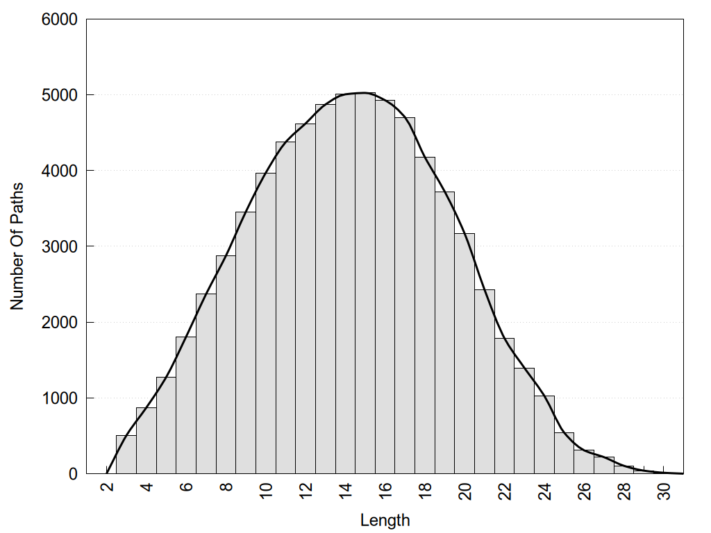 histograms of path distribution according to several parameters