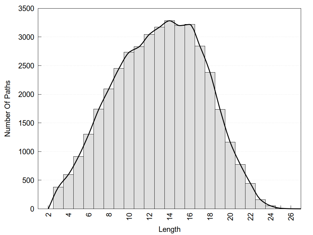 histograms of path distribution according to several parameters