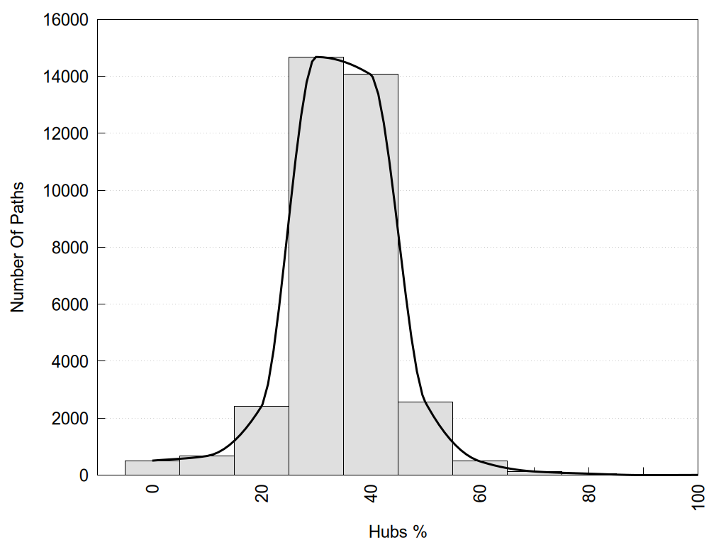 Hub1?, Hub2?: "Yes" if the corresponding node has more than 3 links, otherwise "No".