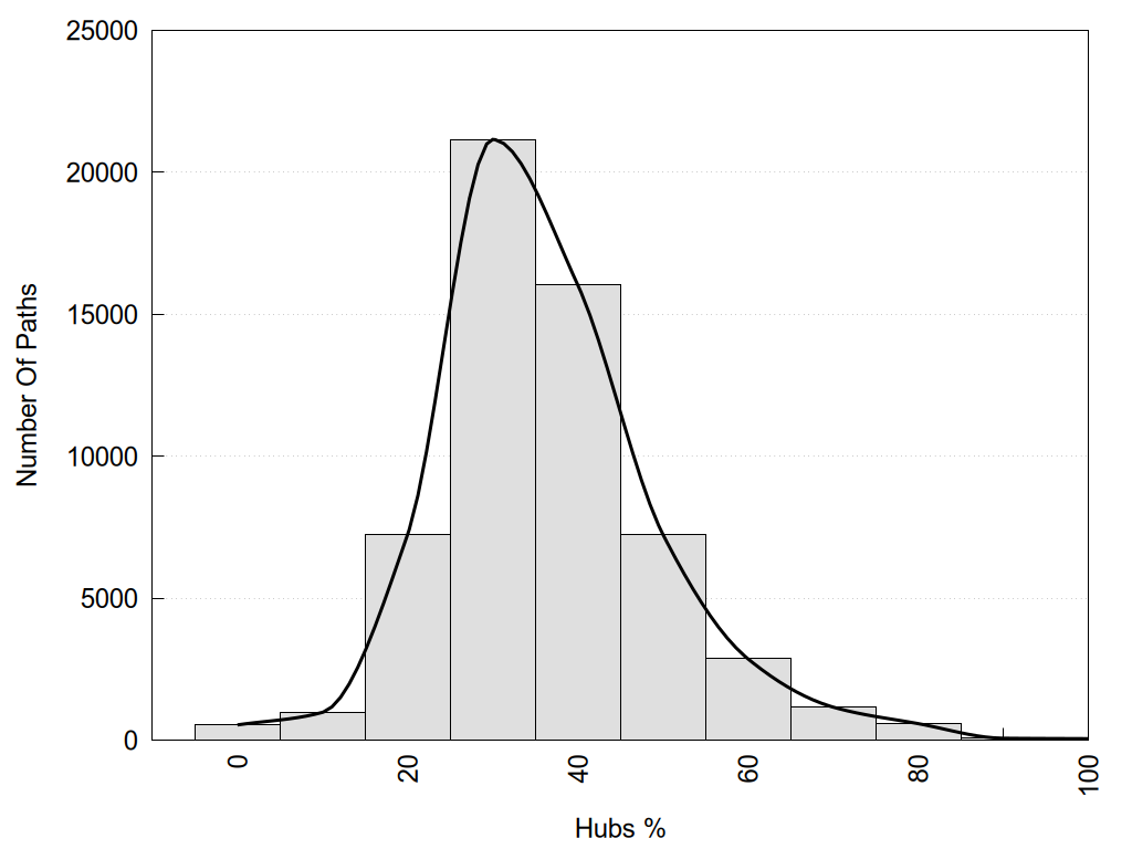 Hub1?, Hub2?: "Yes" if the corresponding node has more than 3 links, otherwise "No".