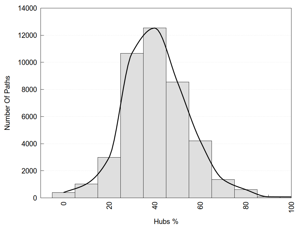Hub1?, Hub2?: "Yes" if the corresponding node has more than 3 links, otherwise "No".