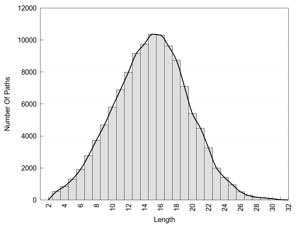 histograms of path distribution according to several parameters