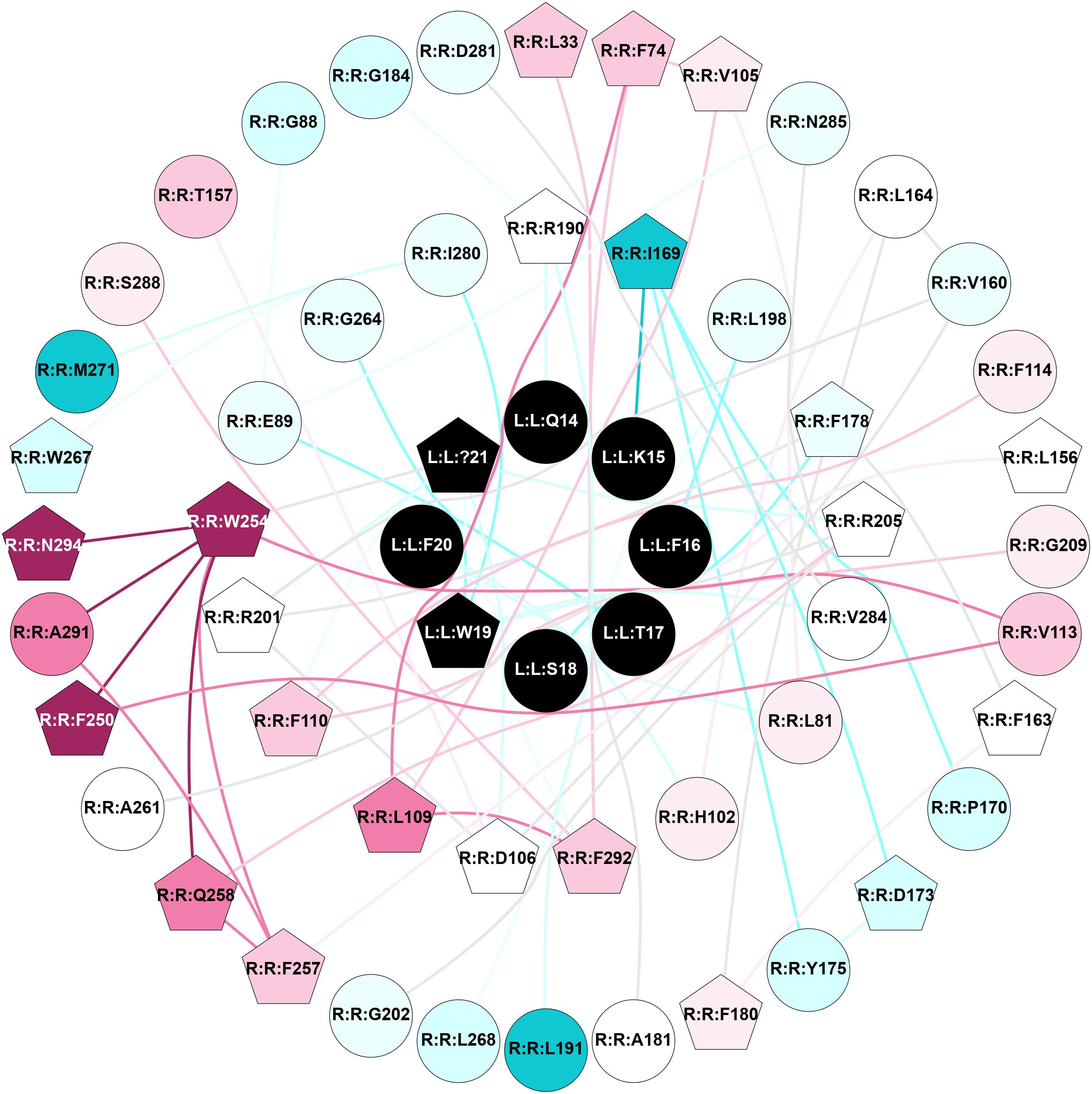 Links and nodes colored according to ConSurf Conservation Grade (See documentation): n/a 1 2 3 4 5 6 7 8 9 |