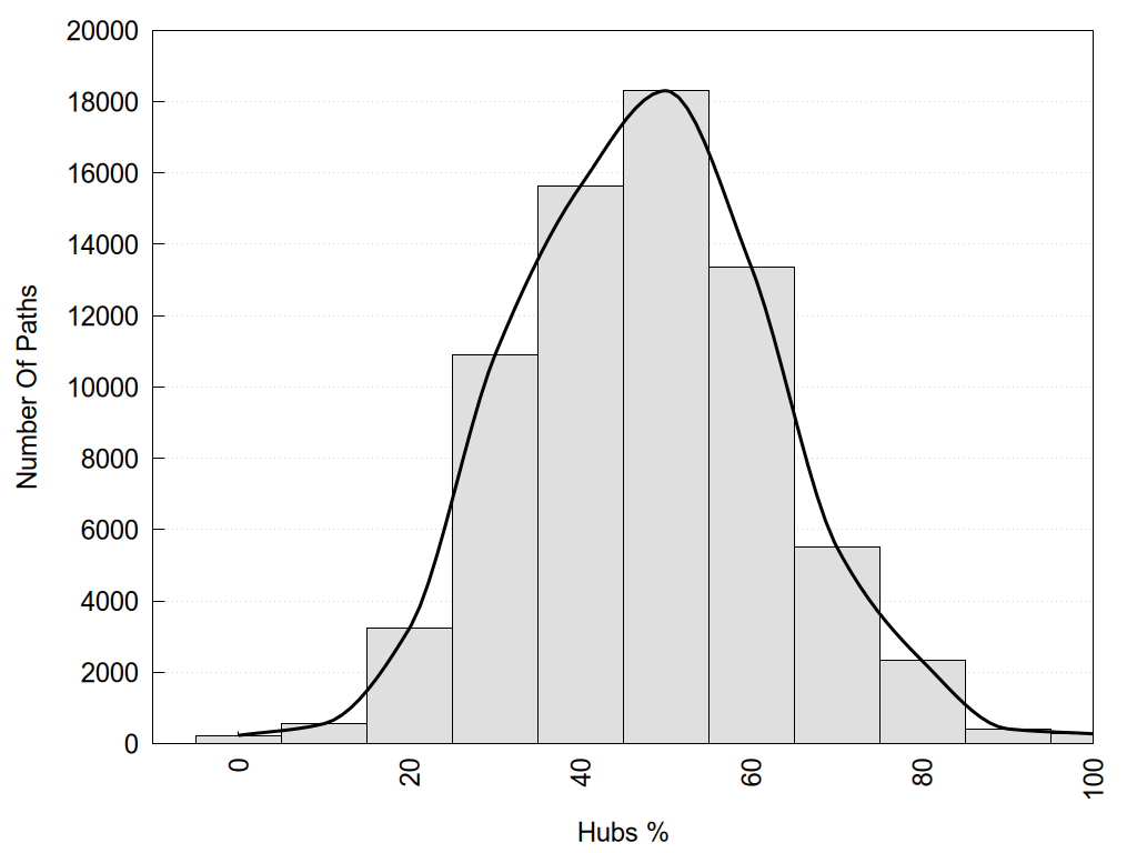 Hub1?, Hub2?: "Yes" if the corresponding node has more than 3 links, otherwise "No".