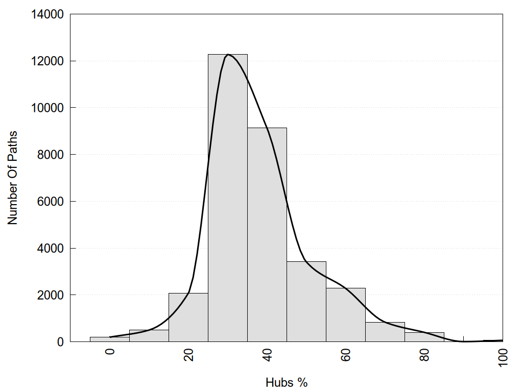 Hub1?, Hub2?: "Yes" if the corresponding node has more than 3 links, otherwise "No".