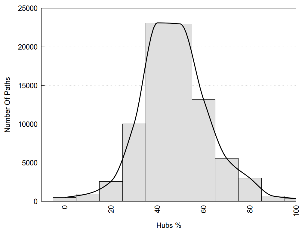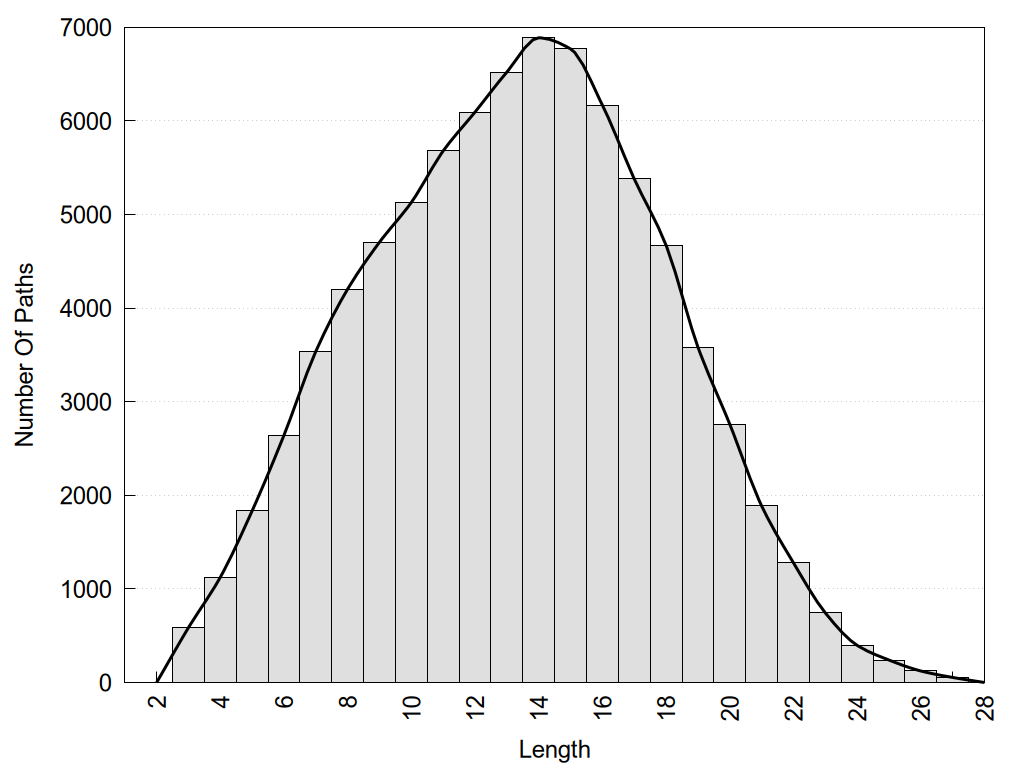 histograms of path distribution according to several parameters