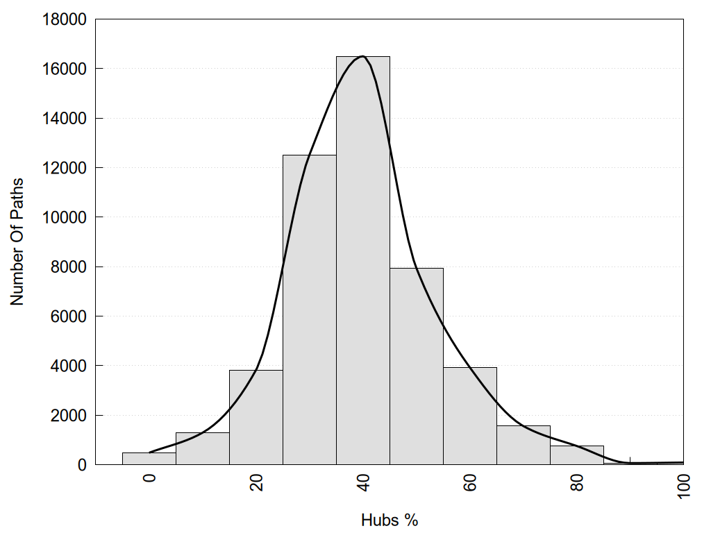 Hub1?, Hub2?: "Yes" if the corresponding node has more than 3 links, otherwise "No".