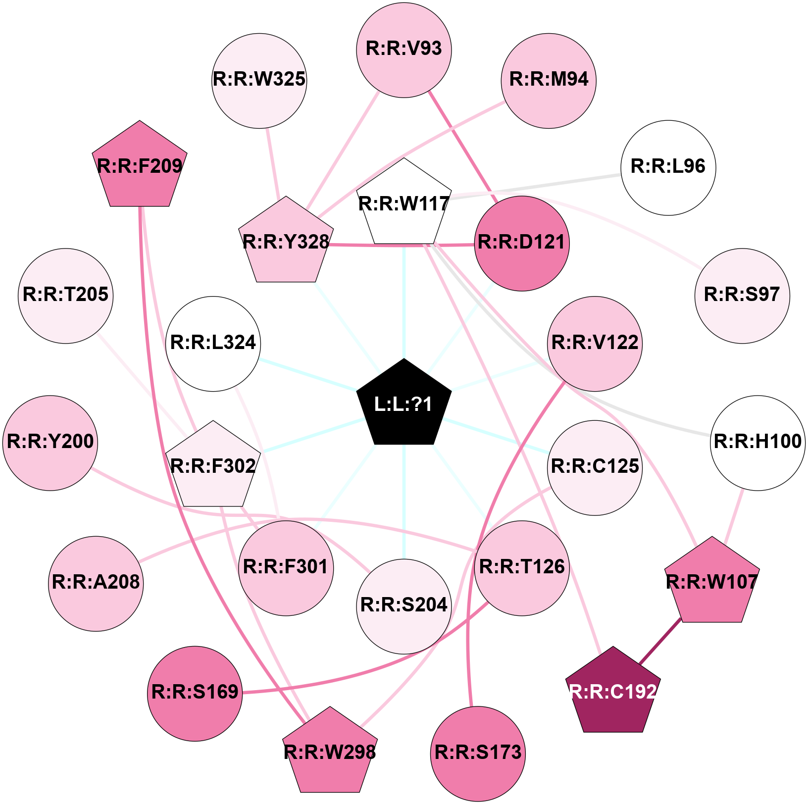 Links and nodes colored according to ConSurf Conservation Grade (See documentation): n/a 1 2 3 4 5 6 7 8 9 |