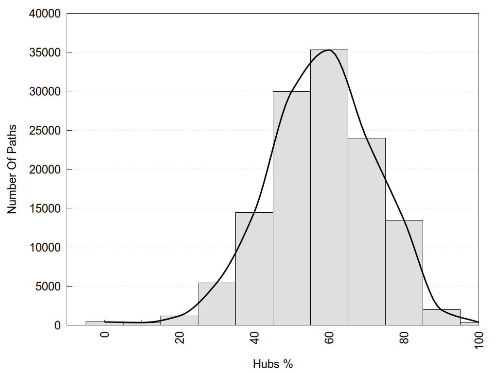 Hub1?, Hub2?: "Yes" if the corresponding node has more than 3 links, otherwise "No".