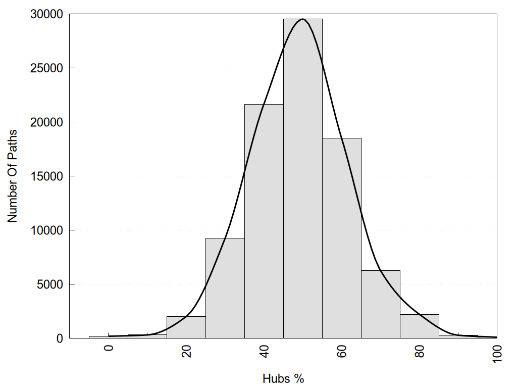 Hub1?, Hub2?: "Yes" if the corresponding node has more than 3 links, otherwise "No".