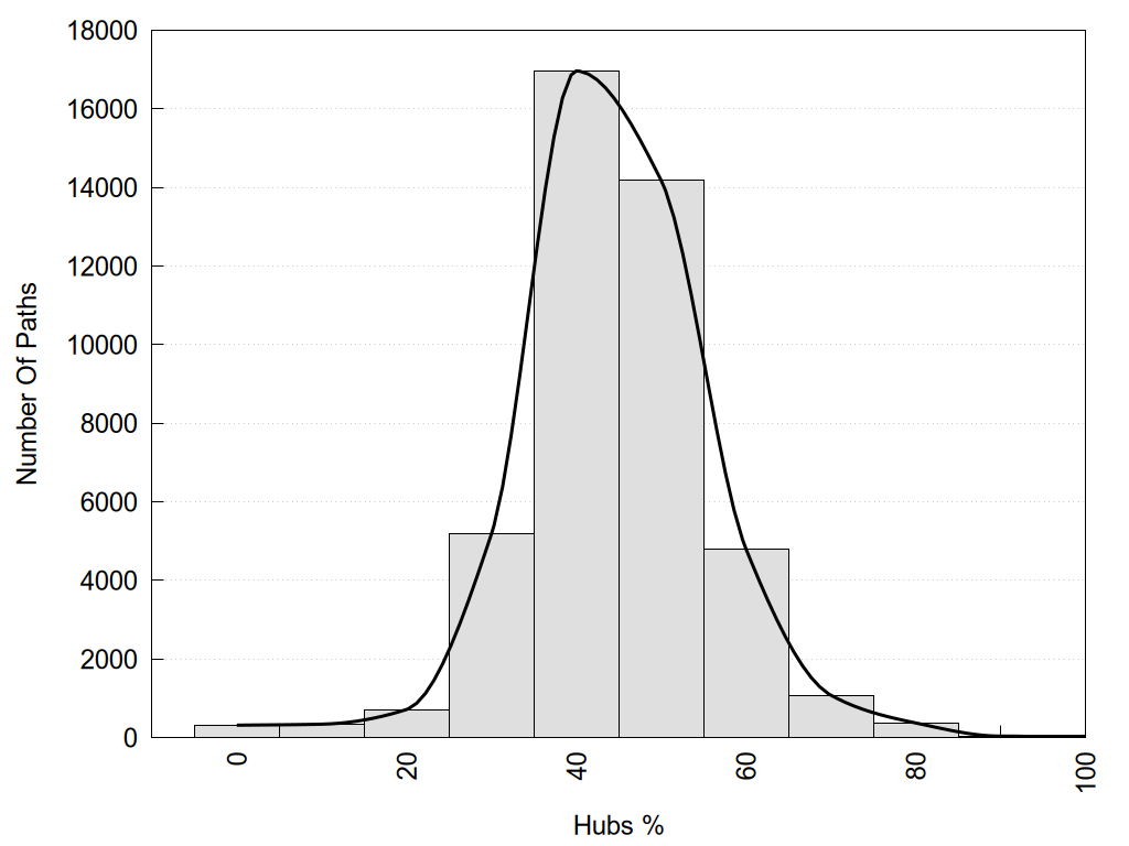Hub1?, Hub2?: "Yes" if the corresponding node has more than 3 links, otherwise "No".