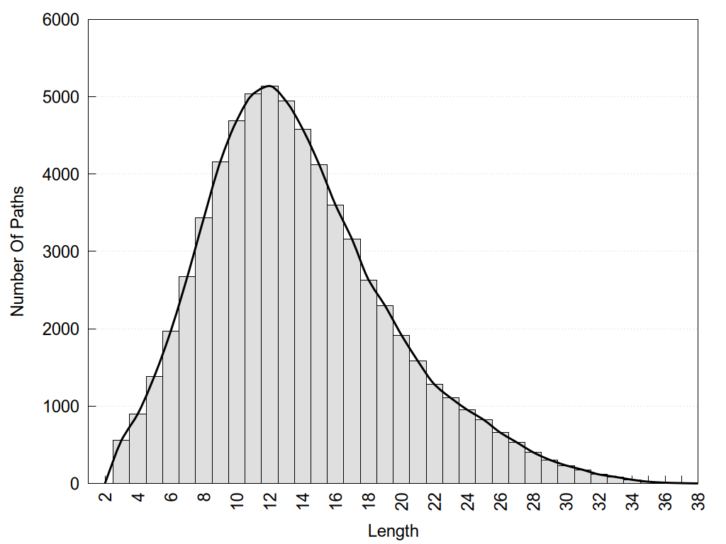 histograms of path distribution according to several parameters