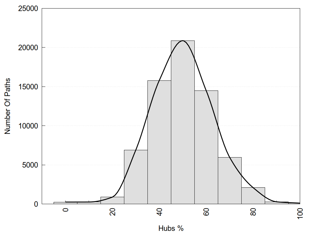 Hub1?, Hub2?: "Yes" if the corresponding node has more than 3 links, otherwise "No".