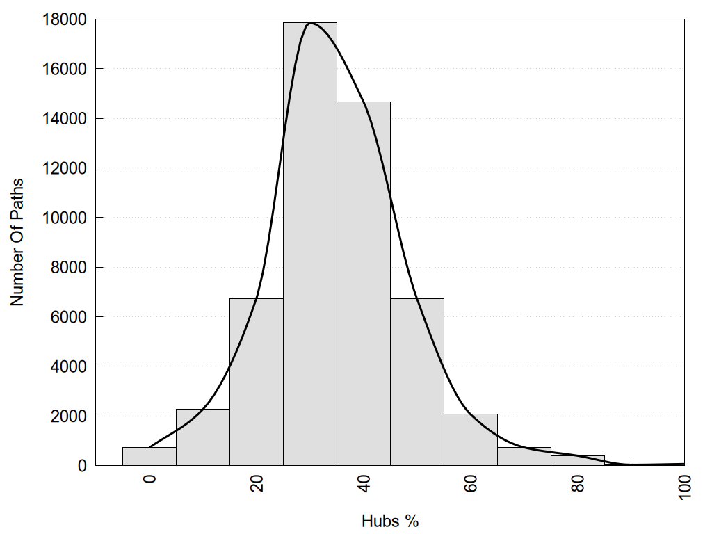 Hub1?, Hub2?: "Yes" if the corresponding node has more than 3 links, otherwise "No".