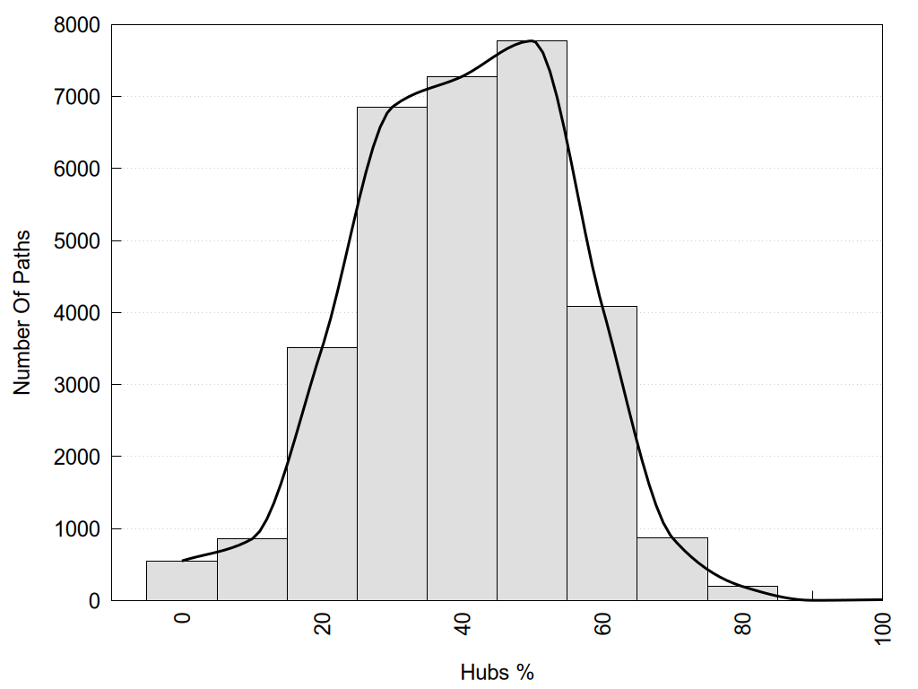 Hub1?, Hub2?: "Yes" if the corresponding node has more than 3 links, otherwise "No".