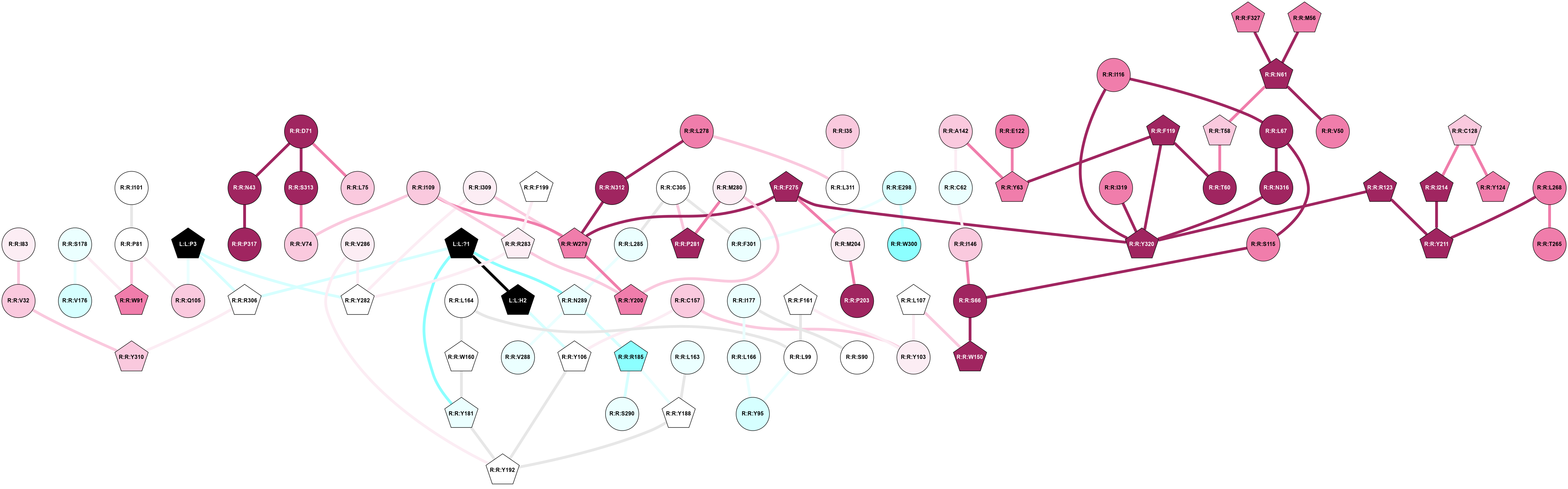 Links and nodes colored according to ConSurf Conservation Grade (See documentation): n/a 1 2 3 4 5 6 7 8 9 |